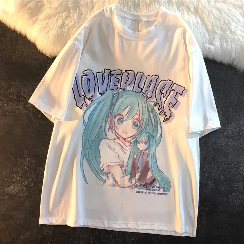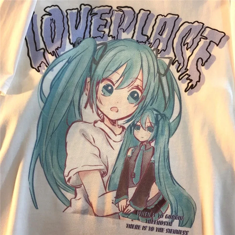 Хлопковая Корейская футболка, Женская Винтажная футболка с принтом в стиле японского аниме второго элемента, Женский Топ с коротким рукавом, с героями мультфильмов