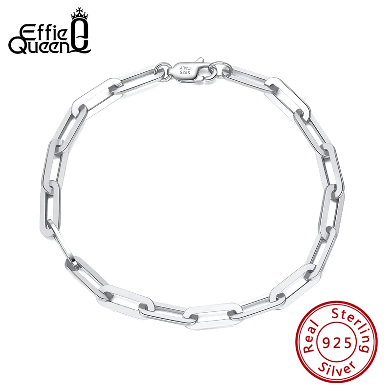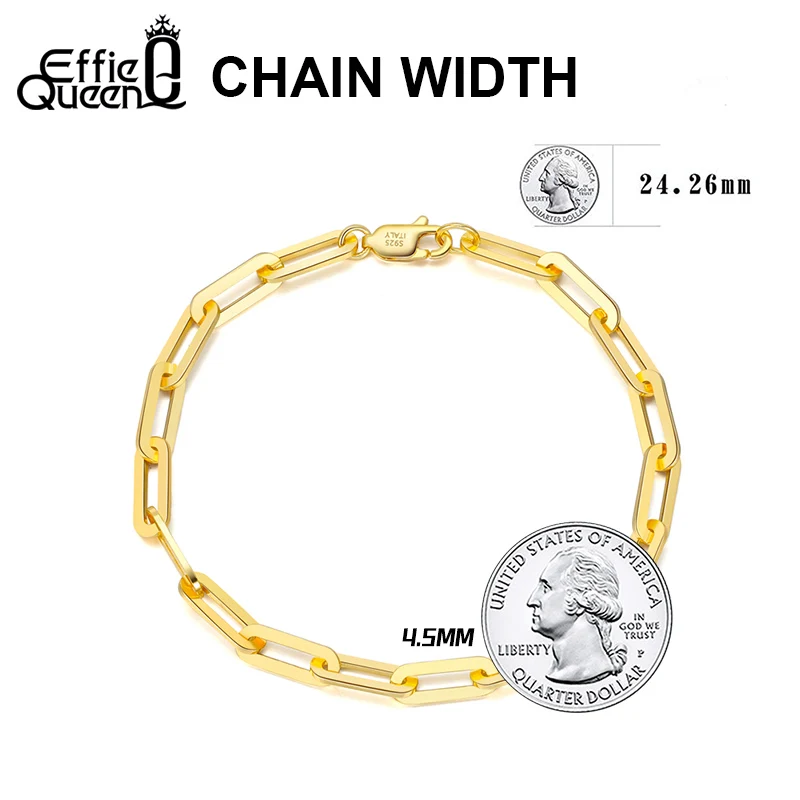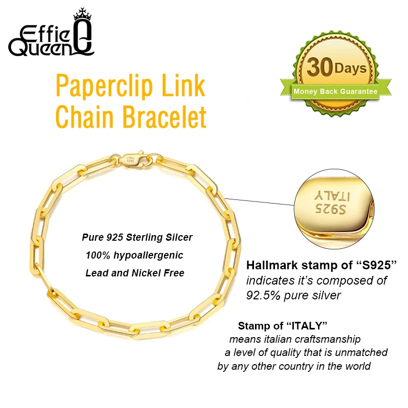 Effie Queen позолоченный браслет-цепочка из настоящего серебра 14 карат, Скрепка, звено, браслет-цепочка для женщин мужчин и девочек-подростков, Италия SB109