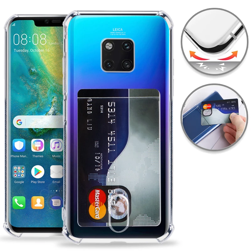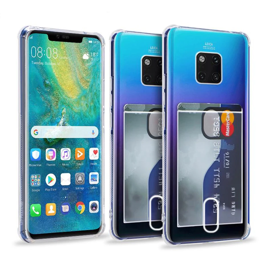 Прозрачный мягкий силиконовый чехол для Huawei P20 P30 Pro, прозрачный чехол с отделением для карт, для Huawei Mate 10, 20, 30Lite