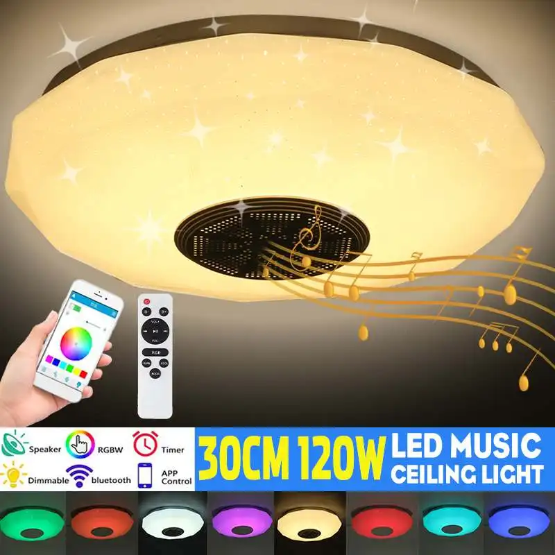 120 Вт современный RGB с регулируемой яркостью музыка потолочный светильник пульт дистанционного управления и приложение Управление потолочный светильник AC220V для дома bluetooth освещение динамиков светильник ing приспособление