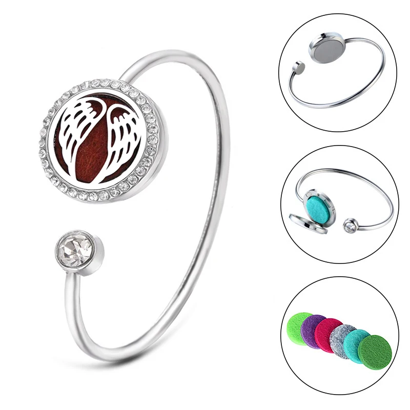 2021 Нержавеющаясталь браслет для ароматерапии диффузор для эфирных масел, медальоны для парфюма Шарм Для женщин подарок с крыльями ангела из цельного браслета из цельного дерева