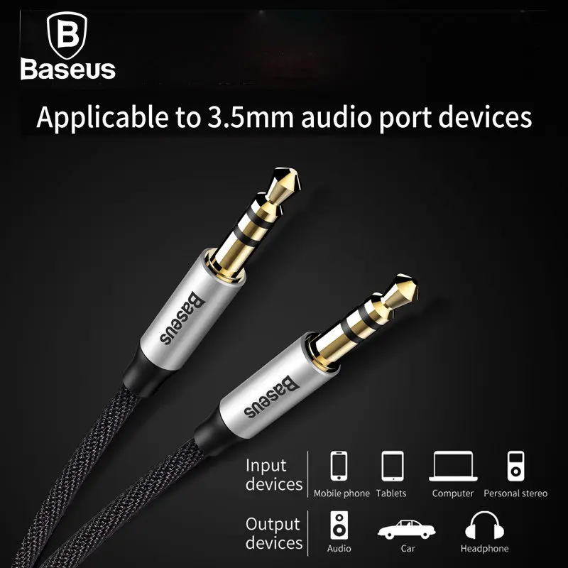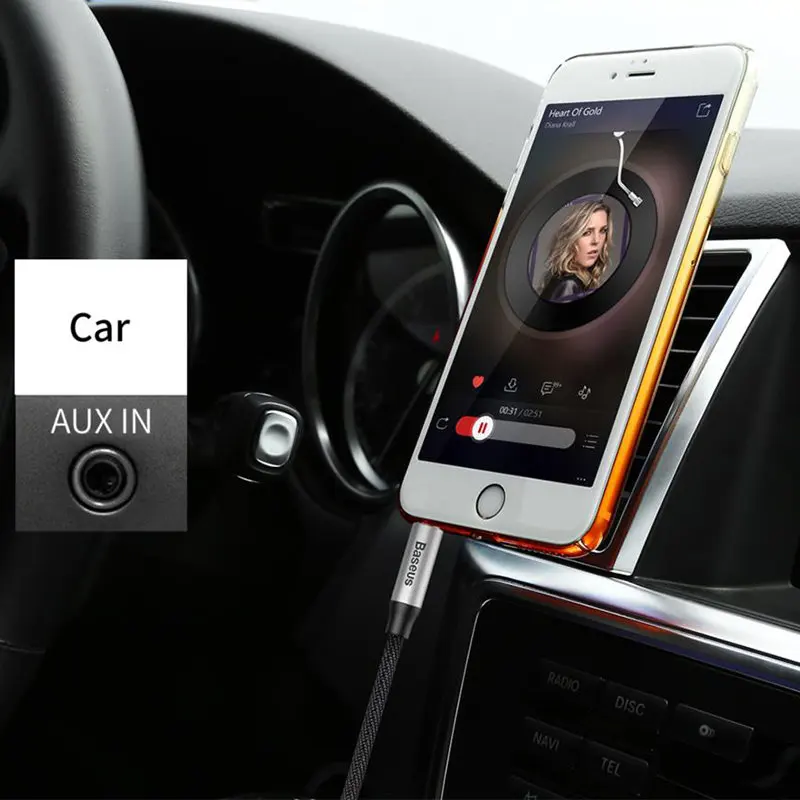 Кабель 0,5 м Baseus с подключением к акустической системе аудио AUX в автомобиль для наушников гибкий