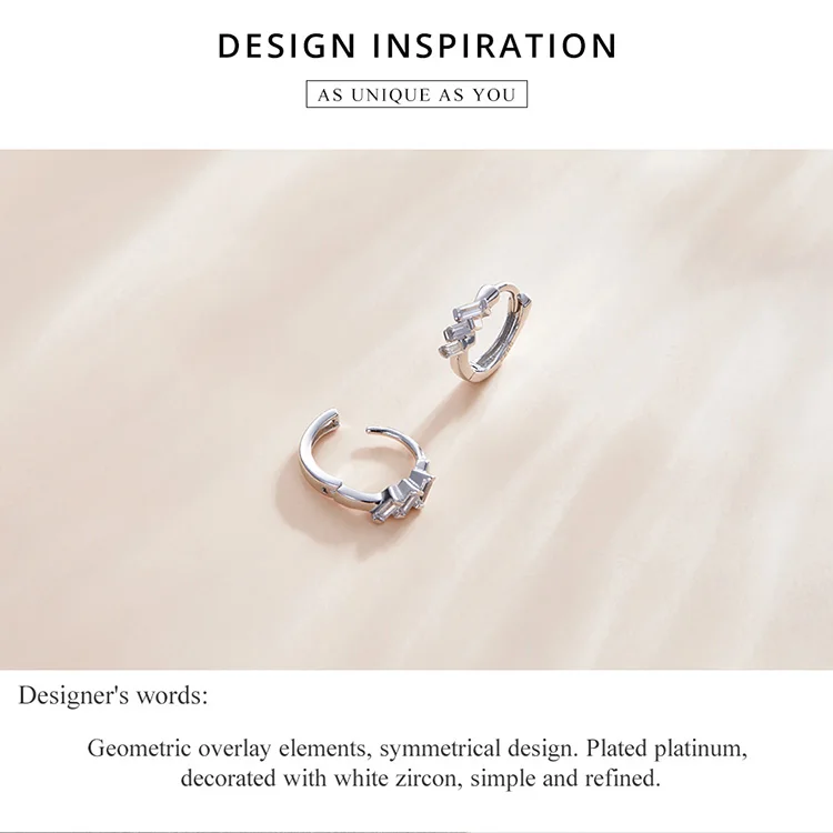Материал:S925 + паве установка CZ + покрытая платинойВес: около 1,6-1,8 гОписание:Геометрические накладные элементы, симметричный дизайн. Гальваническое покрытие из белого золота, украшенное белым цирконом, простое и утонченное.