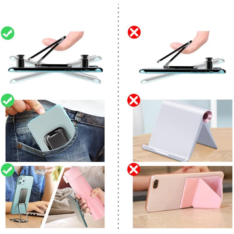 2. 360 градусов произвольного вращения и 180 ° флип, Универсальный гибкий складной держатель мобильного телефона, легко настроить, чтобы обеспечить удобный угол для пальцев.