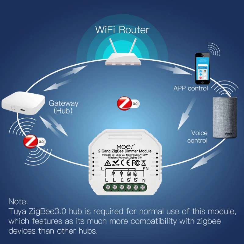 1. Этот умный модуль диммера Tuya ZigBee 3,0 разработан специально с протоколом ZigBee 3,0, совместим с Tuya ZigBee hub, чтобы реализовать всю связь вашего дома, действительно хорошая замена нестабильного Wi-Fi. Протокол ZigBee 3,0 с мини-дизайном подходит для ЕС/настенный переключатель стандарта Великобритании коробки, и легко спрятать его в скрытую стену переключателя коробки вашего традиционного переключателя; Традиционный переключатель и этот умный модуль может работать независимо без помех. (Примечание: Этот модуль подходит только для переключателя сброса.)