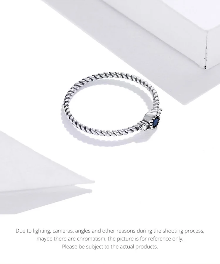 Ширина: 0,15 смS925 + окисленное серебро + паве установка CZСиних цирконов сияет так же загадочно, как и глубоководное море, а скручивающаяся текстура имеет ретро-чувство.