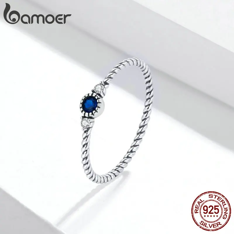 Женские обручальные кольца Bamoer из стерлингового серебра 925 пробы с синим цирконием в стиле ретро, свадебные ювелирные изделия, модные аксессуары для пальцев SCR693