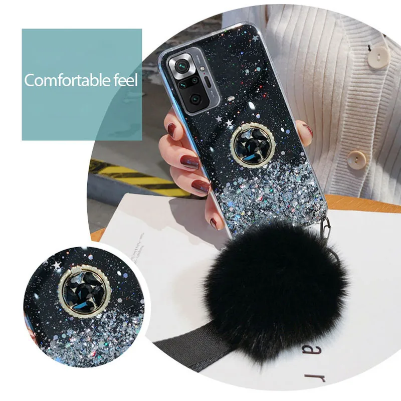 Блестящий чехол с меховым шариком для Xiaomi Poco F3 X3 NFC M3, чехол для Redmi 9C 9A 7A 8A 6A Note 9T 8 7 10 6 9 Pro 10S 9S 8T, чехол-держатель для телефона