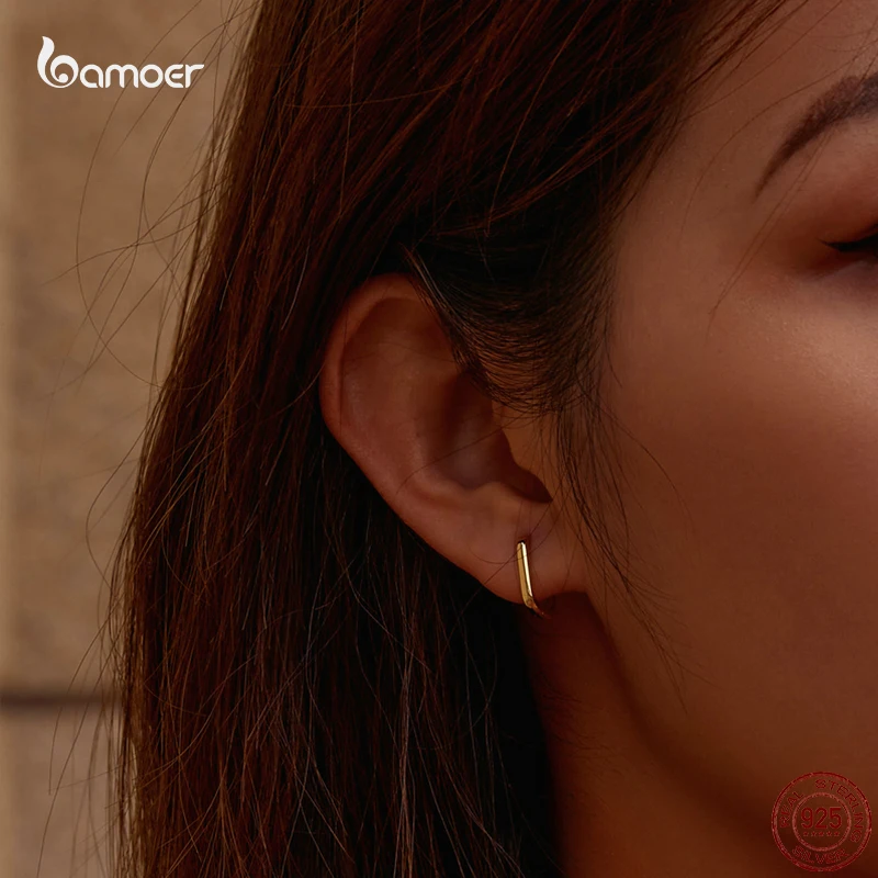Женские серьги-гвоздики Bamoer Pop, золотистые сережки из стерлинго...