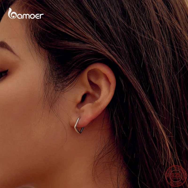 Женские серьги-кольца Bamoer GAE289, 925 пробы, серебристые, изыска...