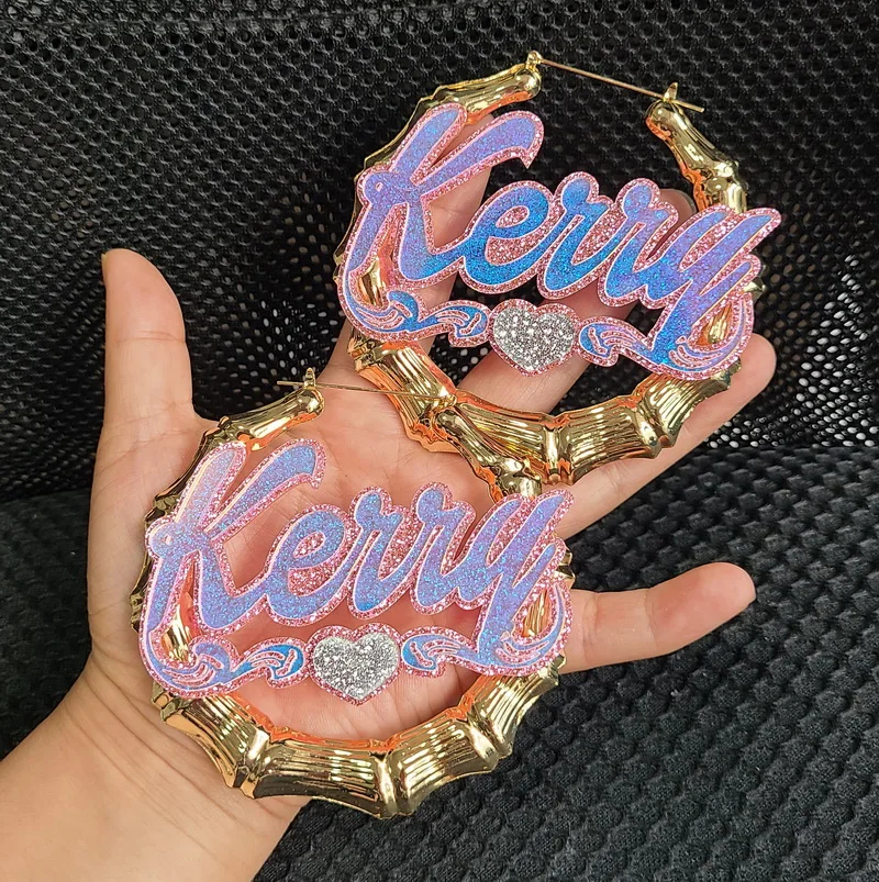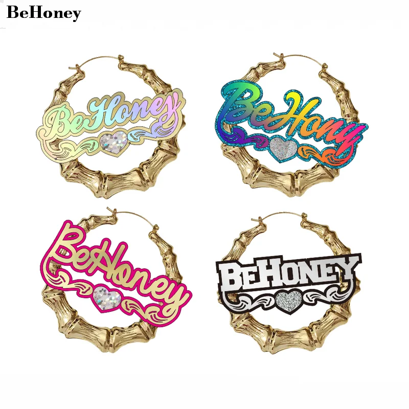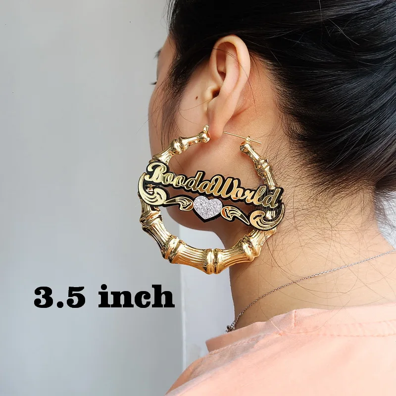Большие круглые баскетбольные женские, Бамбуковые серьги-кольца под заказ с надписью и номером C4