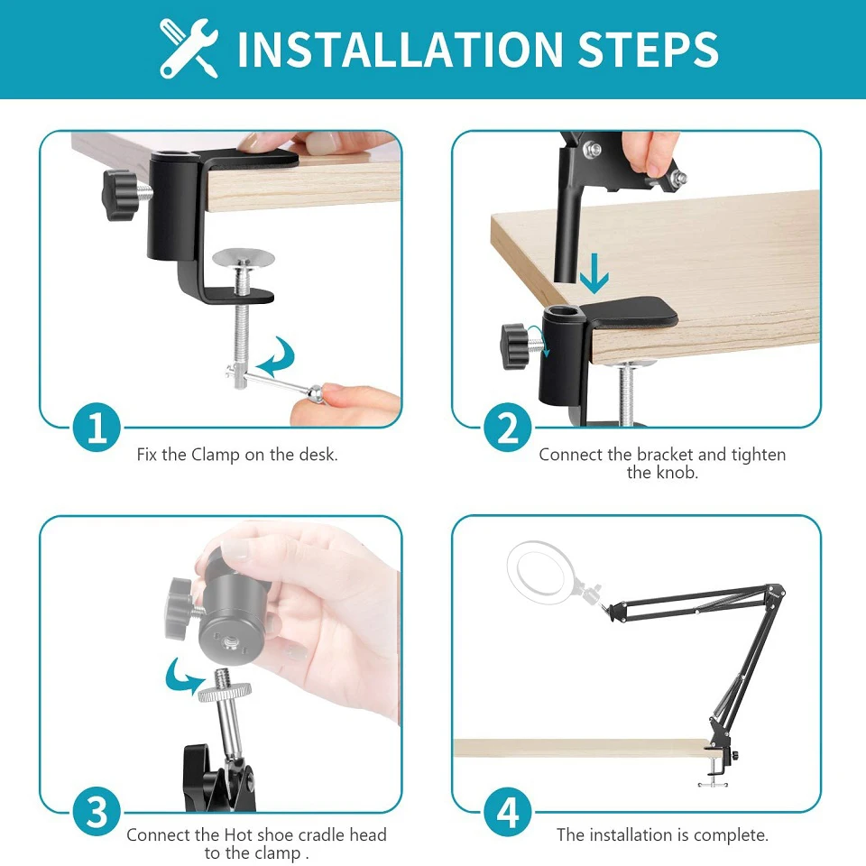 Светильник для фотосъемки, длинная рукоятка с винтом 14, складной кронштейн, регулируемая подставка для кольцесветильник светильника, кольцевая лампа освещения NB35