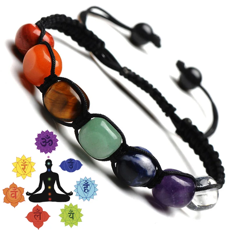 Браслет ручной работы из натурального камня 7 чакр, Йога, браслеты из бисера для женщин, исцеляющий браслет рейки, браслеты из бисера