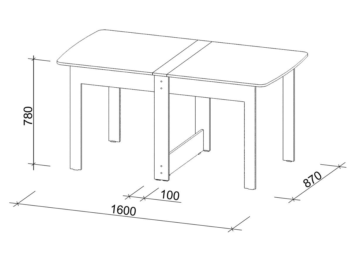 Размер стола в разложенном виде (ШхГхВ): 1600х870х780 мм.