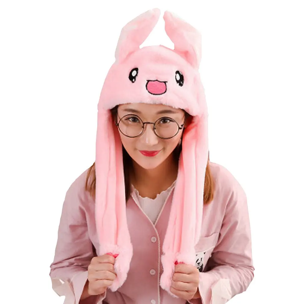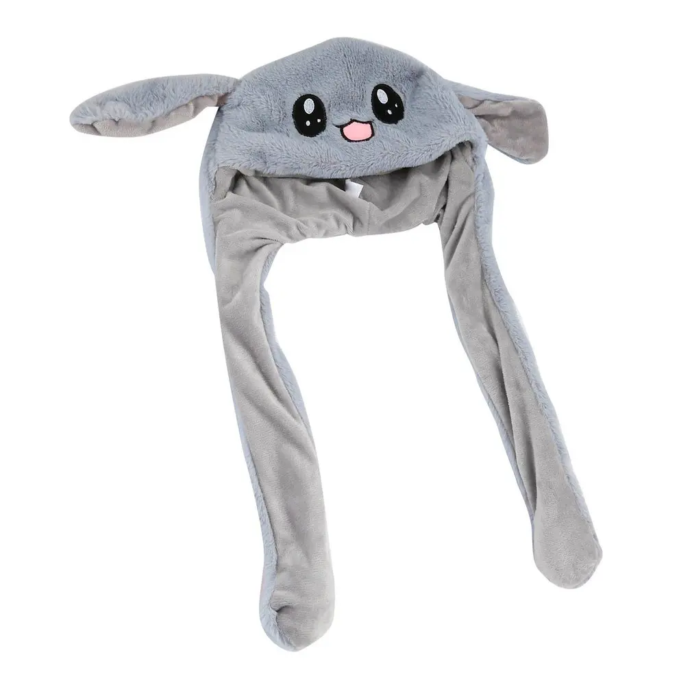 Плюшевая шапка с движущимися кроличьими ушками, забавная ручная шапка-подушка безопасности, Магнитная мягкая шапка с регулируемыми длинными ушками, милый подарок с животными, Женская