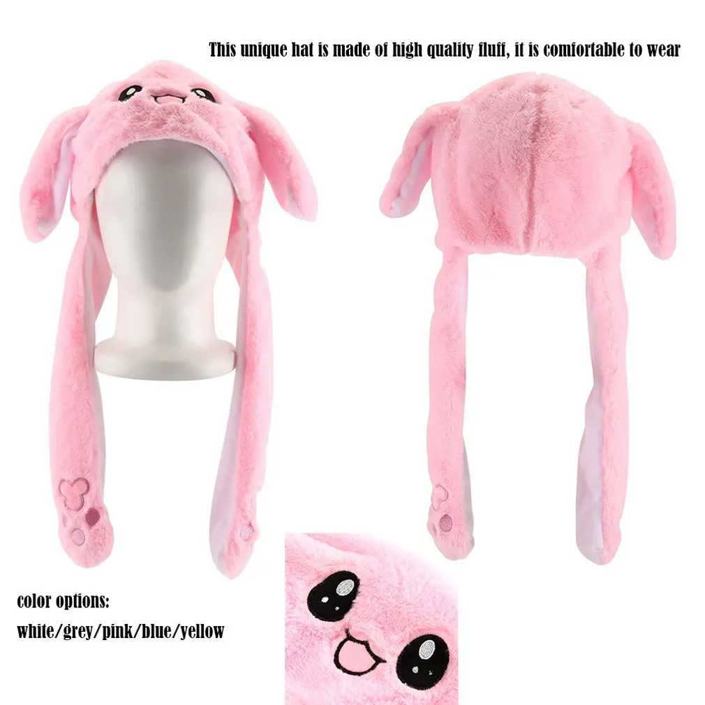 Плюшевая шапка с заячьими ушками, забавная ручная защелкивающаяся подушка безопасности, мягкая Магнитная шапка с регулируемыми длинными ушками, милая Подарочная шапка с заячьими ушами
