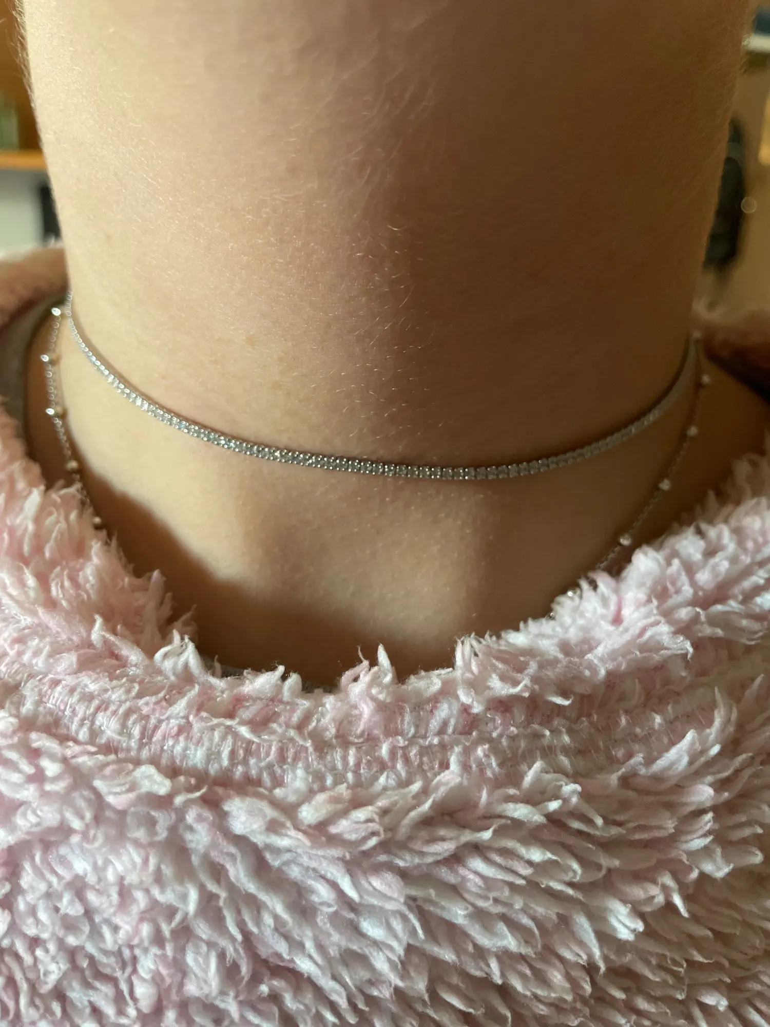 Это немного тоньше, чем ожидалось, но красиво. Очень яркий и регулируемый. You can Wear it As much As choker As Loose. Потребовалось 5 дней, чтобы добраться до Барселоны (Испания)! Доставка заняла 12 дней, но прибыла очень, очень быстро! Я очень счастлив, нечему завидовать тем, кто продает украшения в четыре раза дороже. Это действительно красиво!