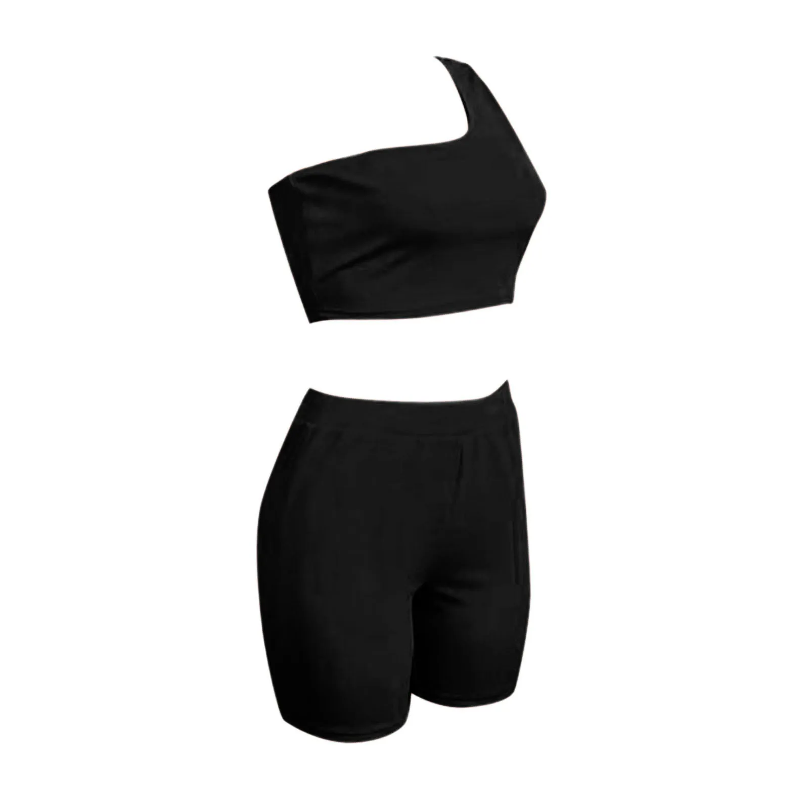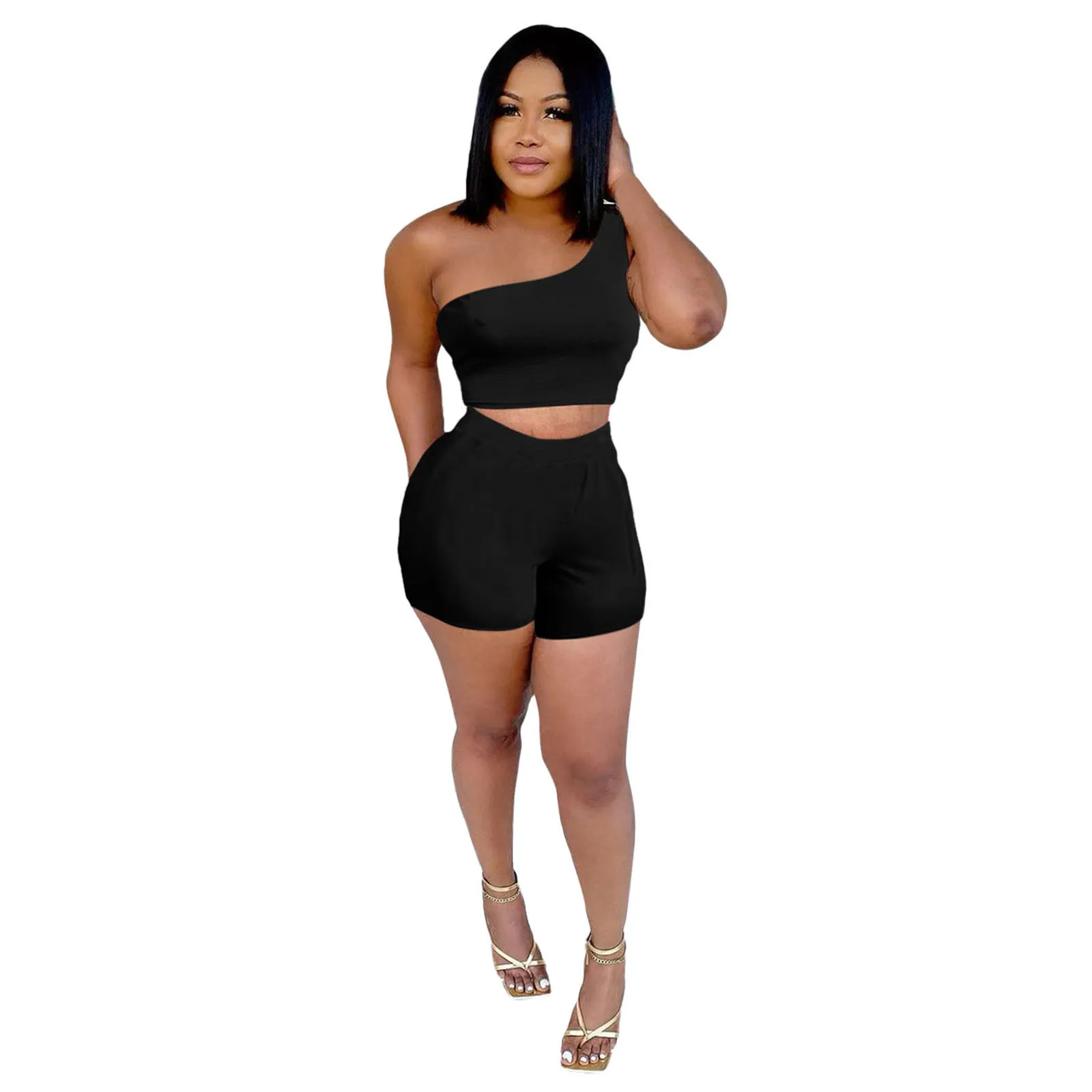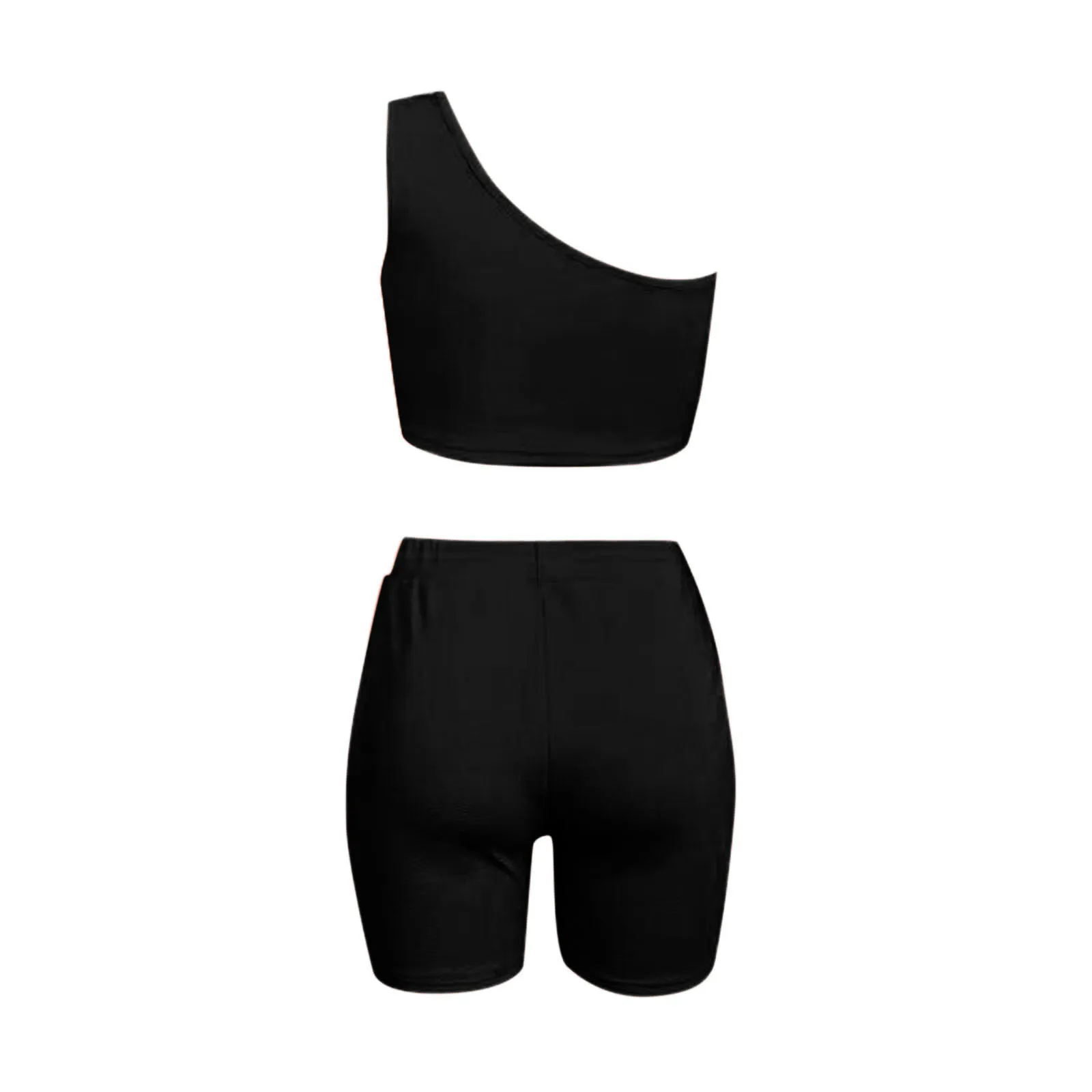 Женский однотонный жилет на одно плечо, топ и шорты, комплект из двух предметов