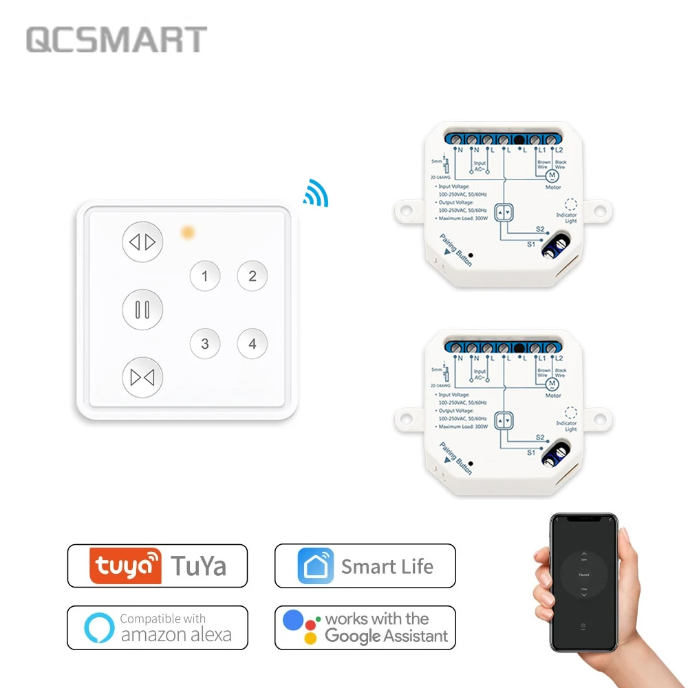 Переключатель для штор Tuya Smart Life RF, Wi-Fi, 4 канала, дистанционное управление через приложение, таймер, управление через Google Home, Alexa, автоматизация сделай сам
