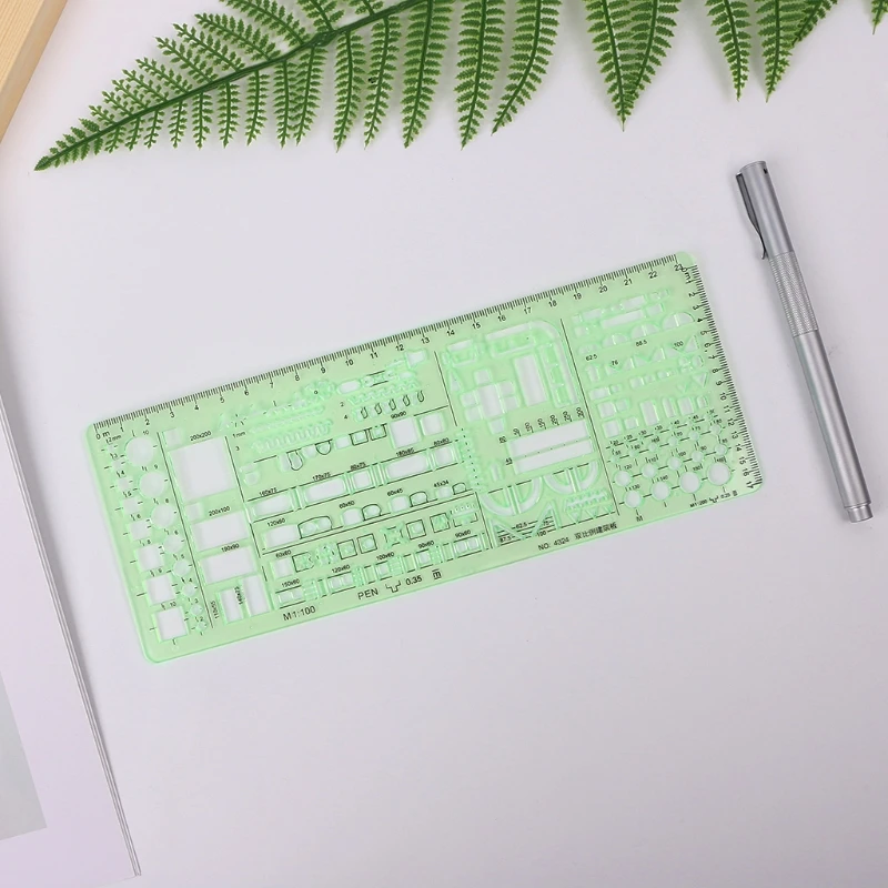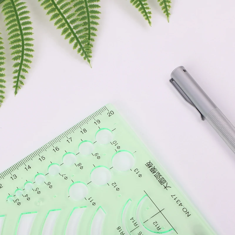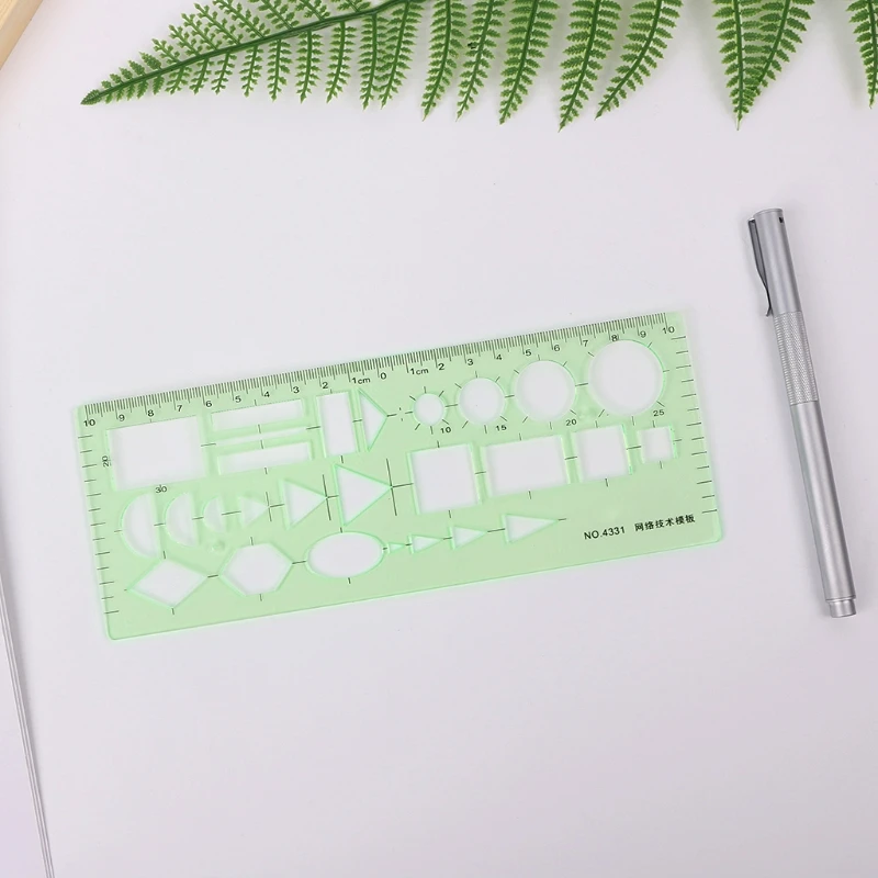 Линейка пластиковая 18 видов стилей, круги, геометрический дизайн линейки, зеленая