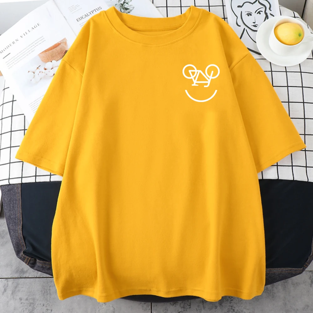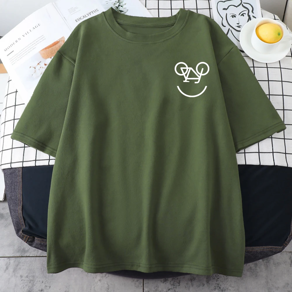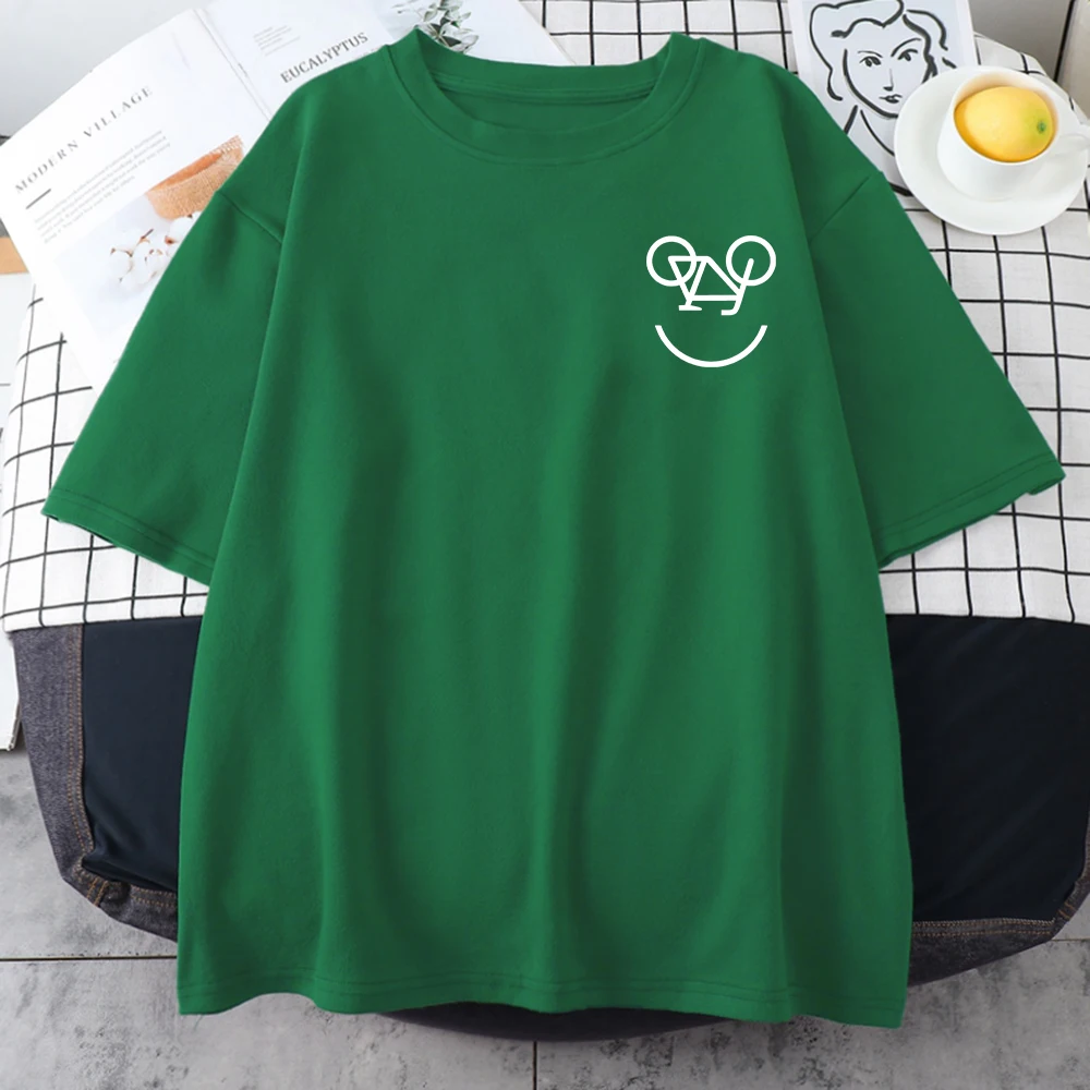 Творческое сочетание смайлик велосипеда Печать Женская футболка простые футболки с рисунками из мультфильмов в винтажном стиле; Одежда для мужчин и женщин хлопковые-Размеры футболки женские