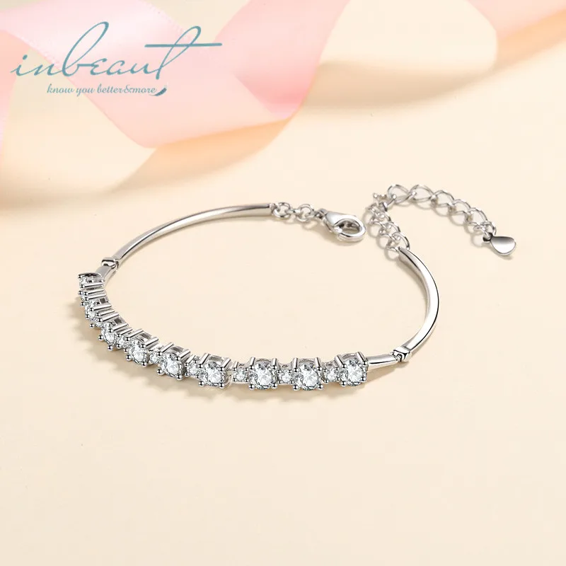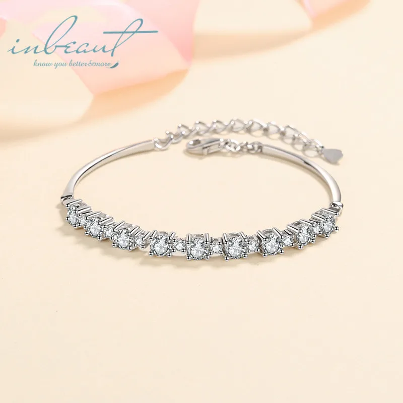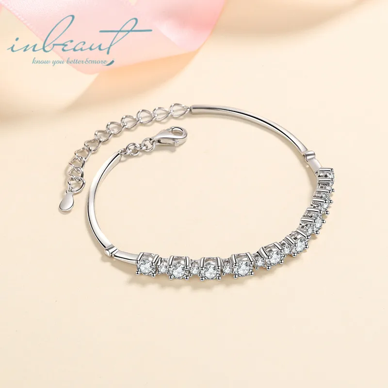 Inbeaut 925 серебро пройти Diamond тесты последние 2,7 ct отличный крой D Цвет Круглый Муассанит браслет классический обручальные кольца, ювелирное изделие, подарок
