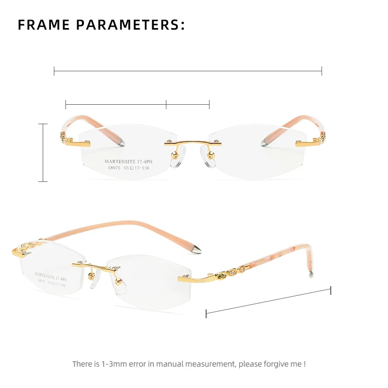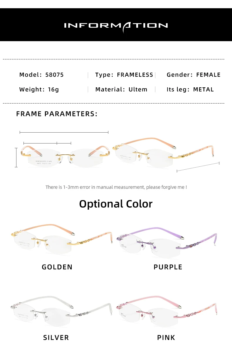 ZIROSAT 58075 Модные женские очки без оправы брендовые дизайнерские очки для близорукости Прозрачная Оптическая оправа для очков по рецепту