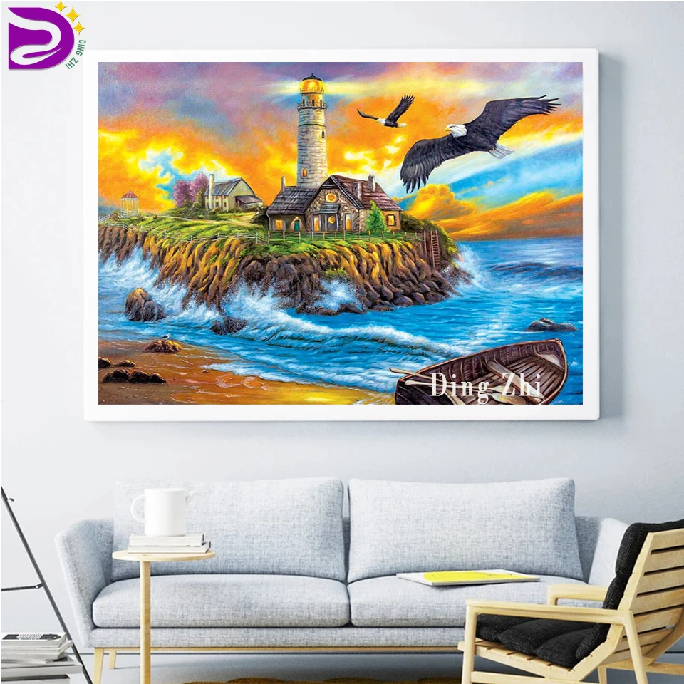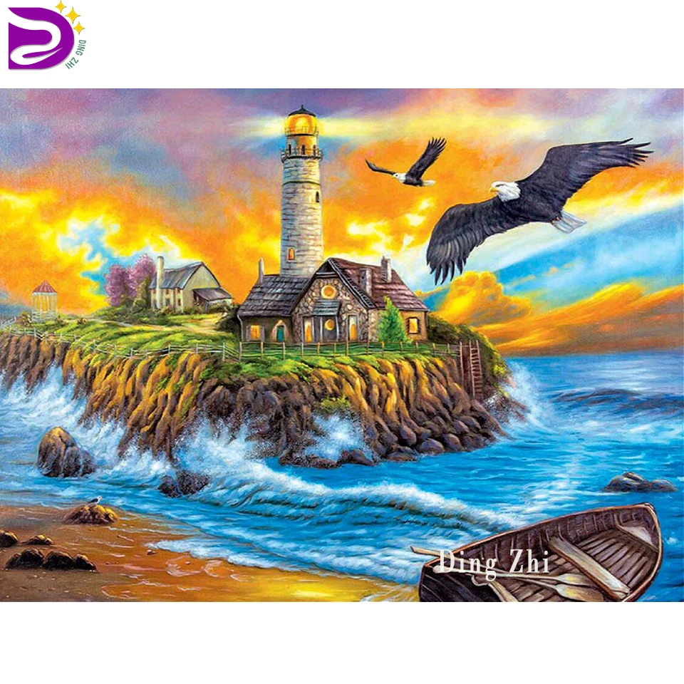 Картина «сделай сам», алмазная живопись, пляж, маяк пейзаж, алмазная вышивка, 5D мозаика, Летающий орел, вышивка крестиком, Декор