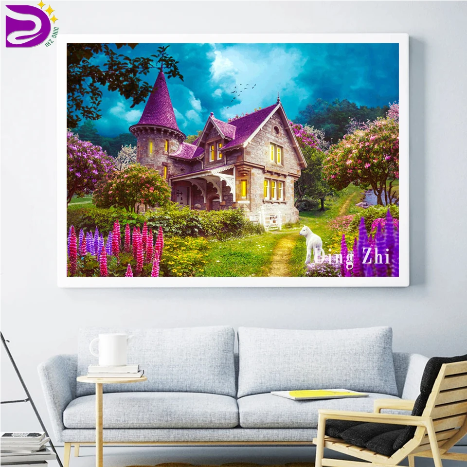 Набор для алмазной живописи "сделай сам", квадратные, круглые, с изображением дома, цветы, алмазная вышивка, мозаика, идиллический пейзаж, вышивка крестом, стразы