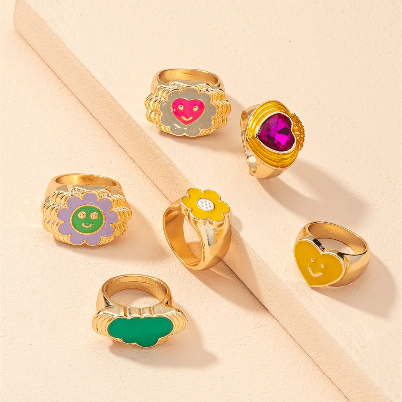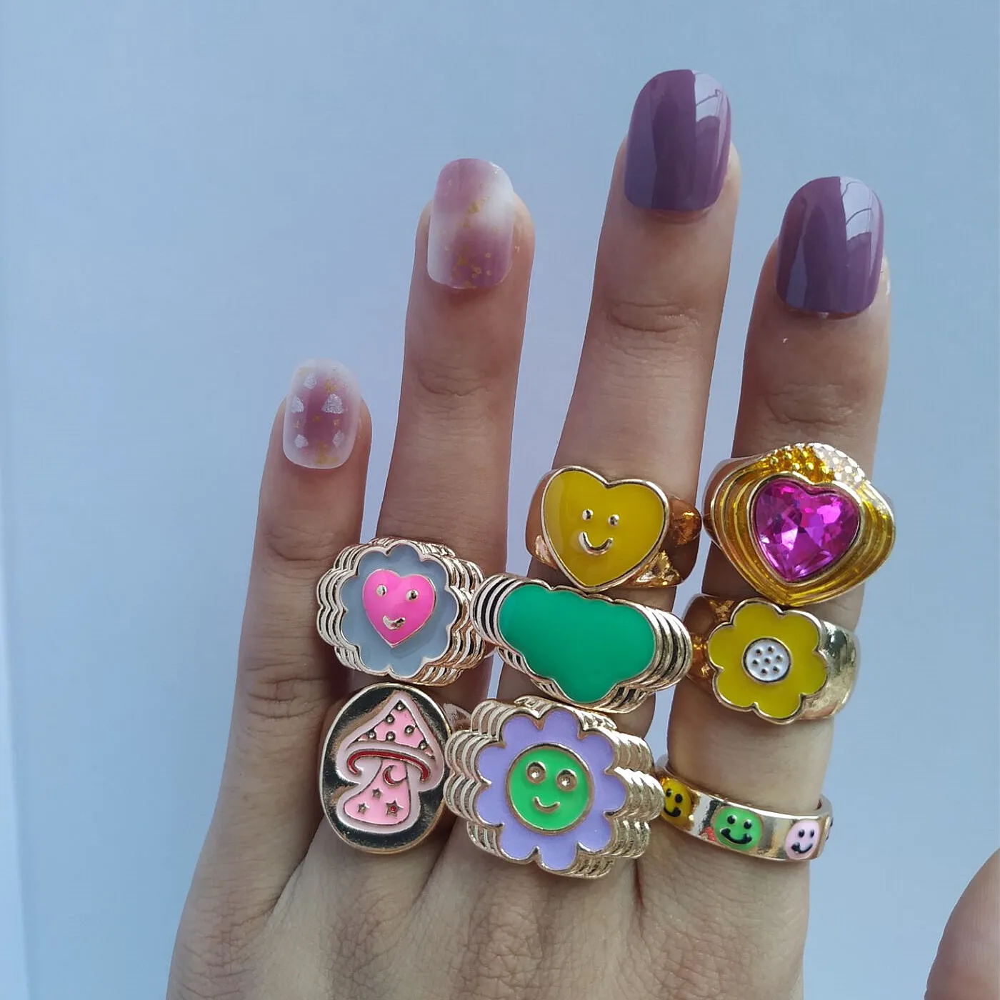 Женское толстое кольцо с эмалью, массивное Ювелирное Украшение в форме гриба, сердца, цветка, королевы, инопланетянина, кольца с облаками