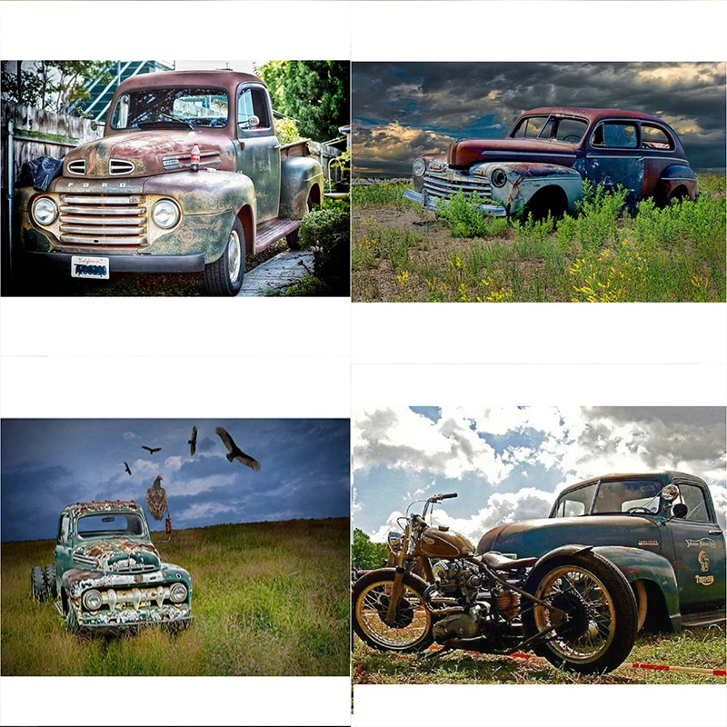Алмазная живопись 5D сделай сам, Набор для вышивки крестиком, мозаичная паста в виде старых автомобилей, полная Алмазная вышивка, картина с изображением старого пикапа