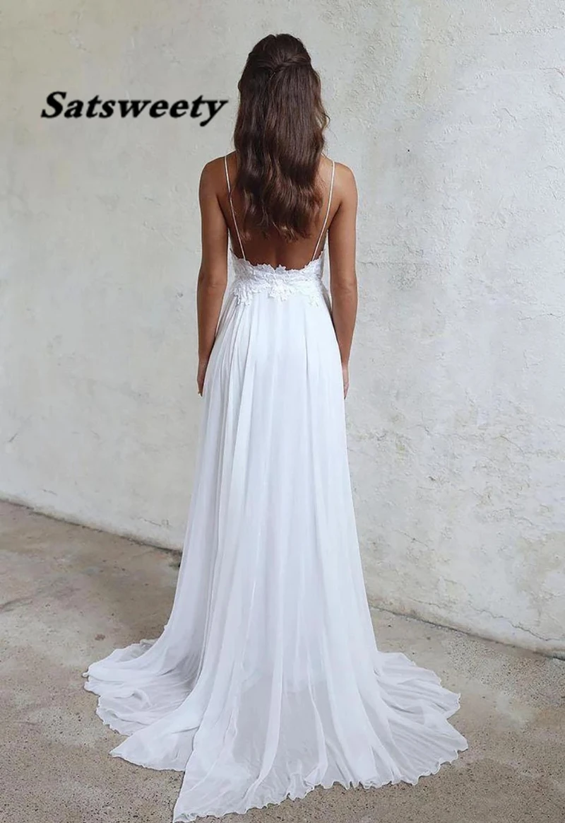 Сексуальное пляжное свадебное платье на бретельках, дешевое длинное женское платье с открытой спиной, свадебное платье, свадебные платья