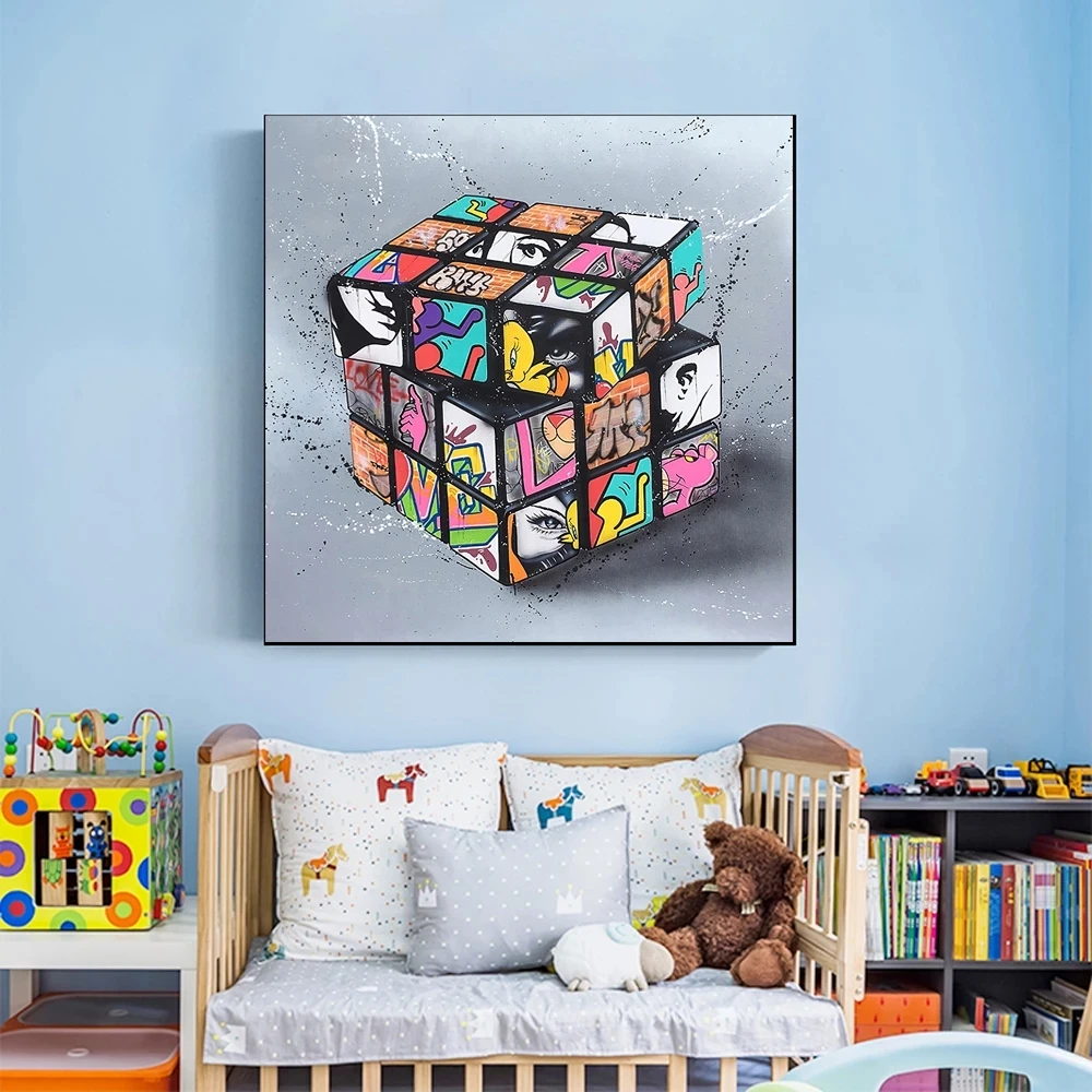 Поп-улица Кубик Рубика граффити Художественная Картина на холсте настенные художественные плакаты принты настенные картины для гостиной домашний декор кубик
