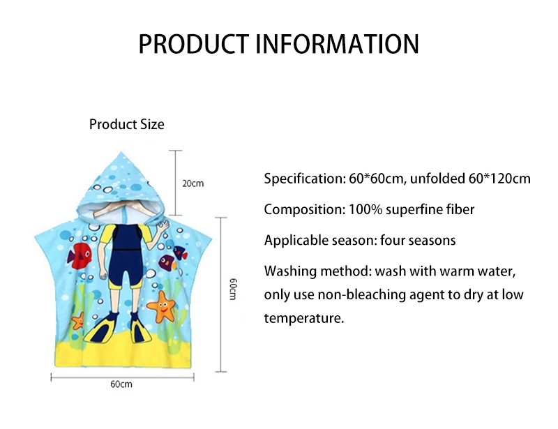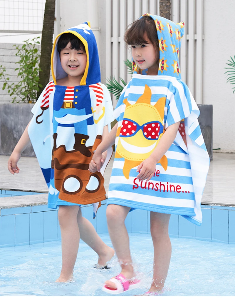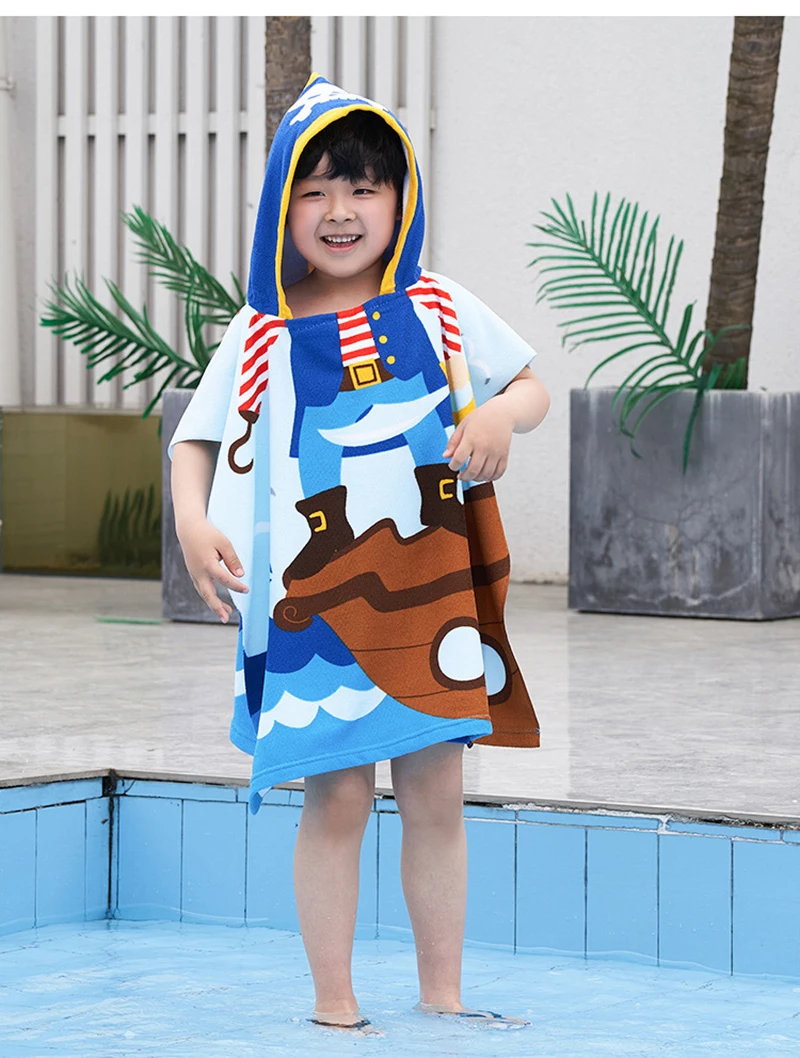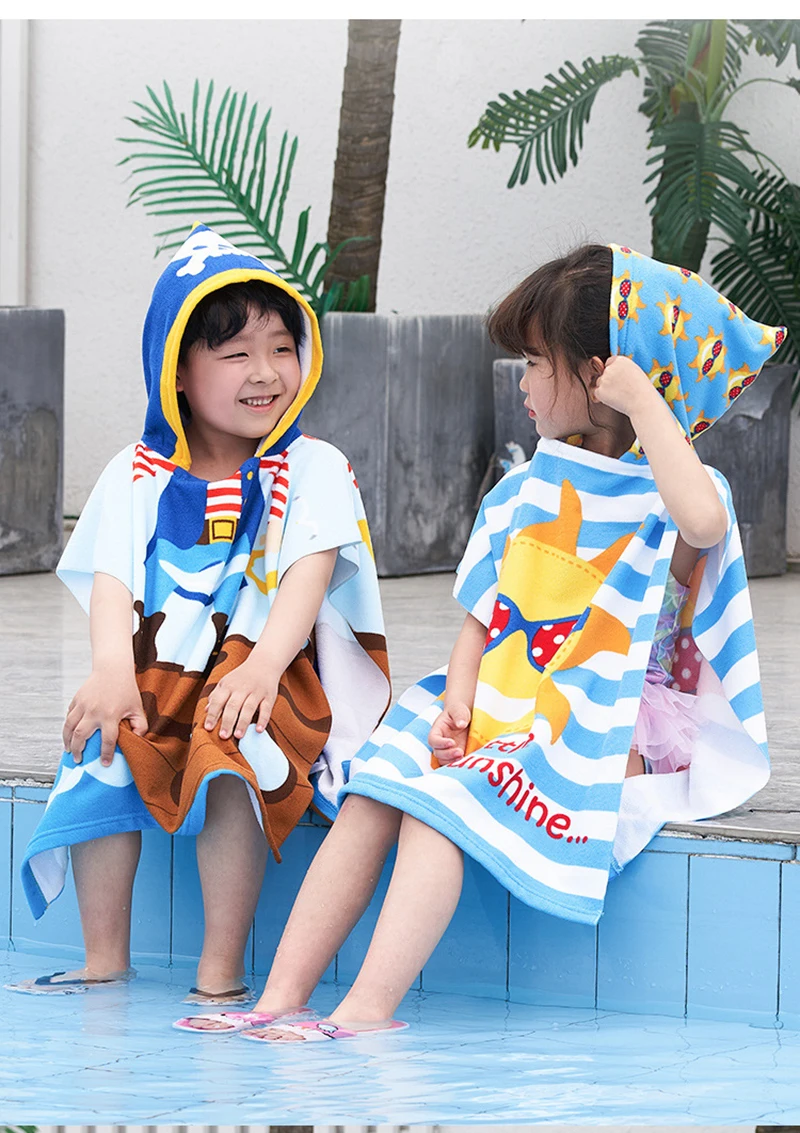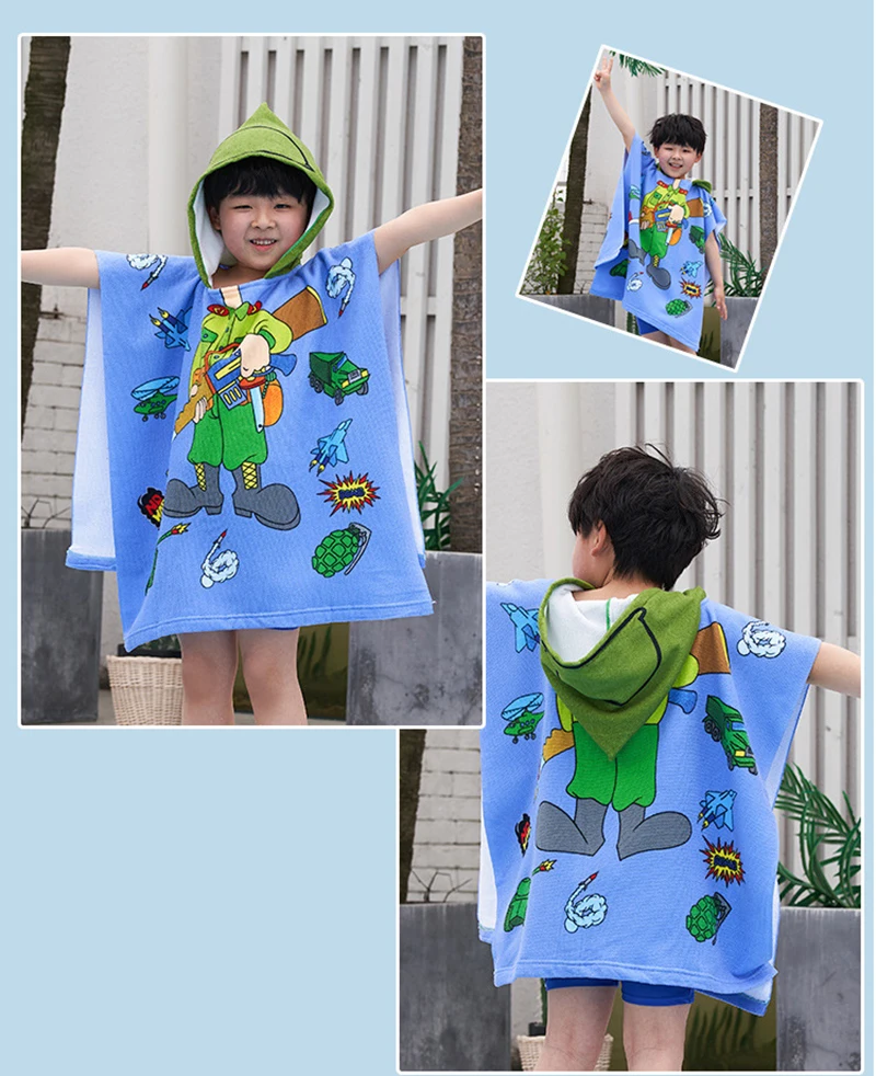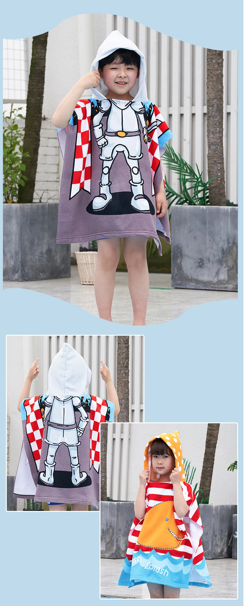 Большая милая детская шаль для ванной с капюшоном и мультяшным принтом