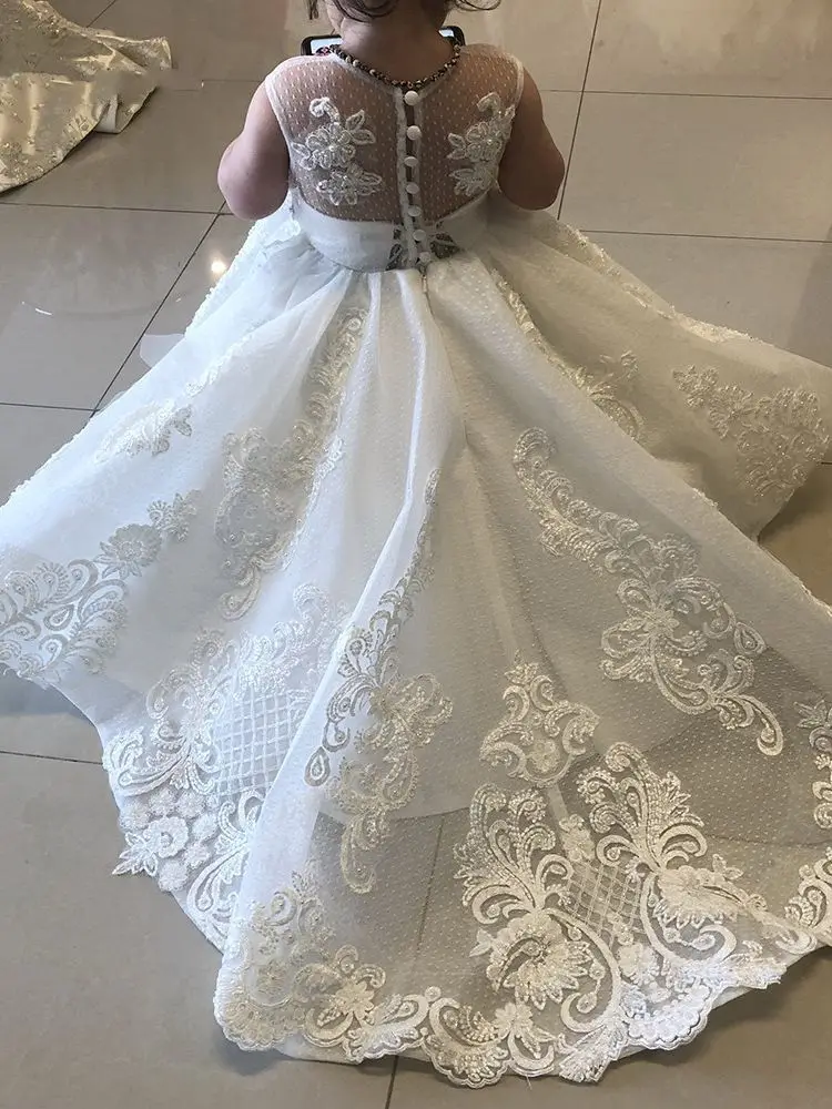 Белые пушистые кружевные платья с цветочным рисунком для девушек на...