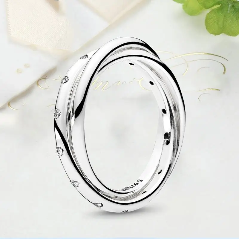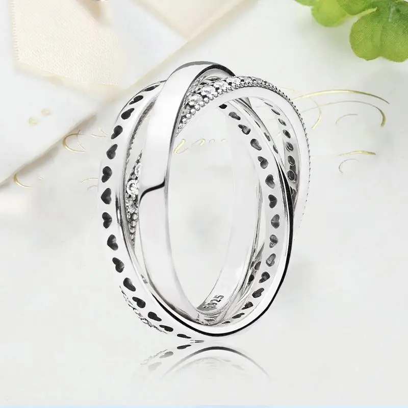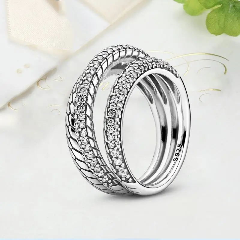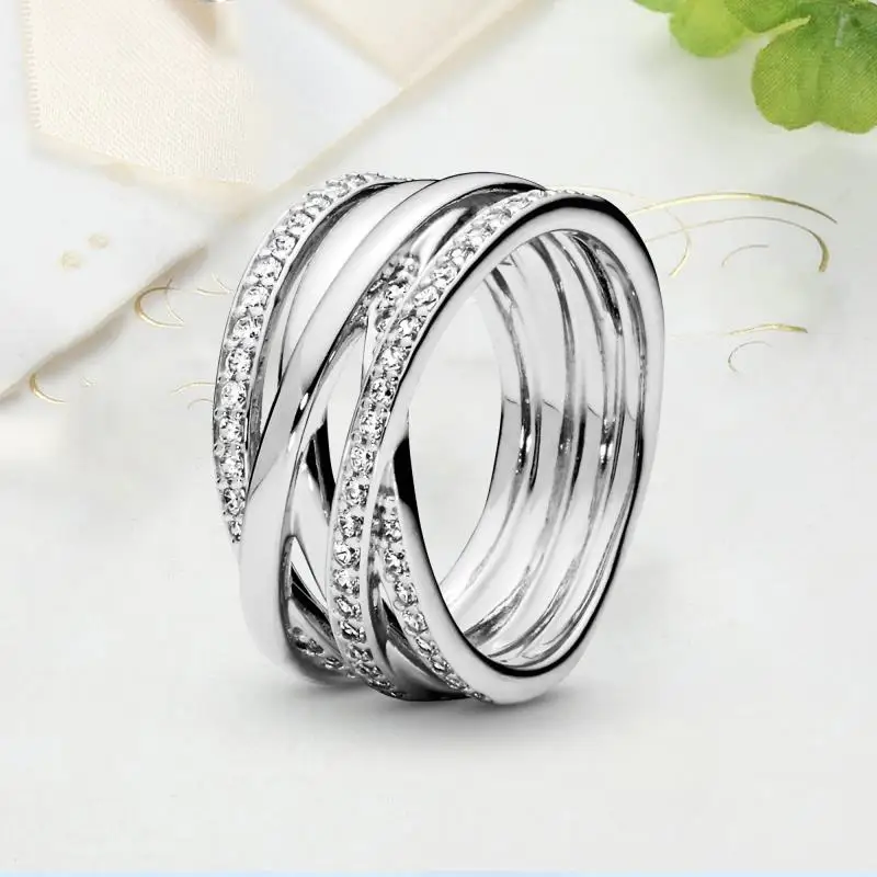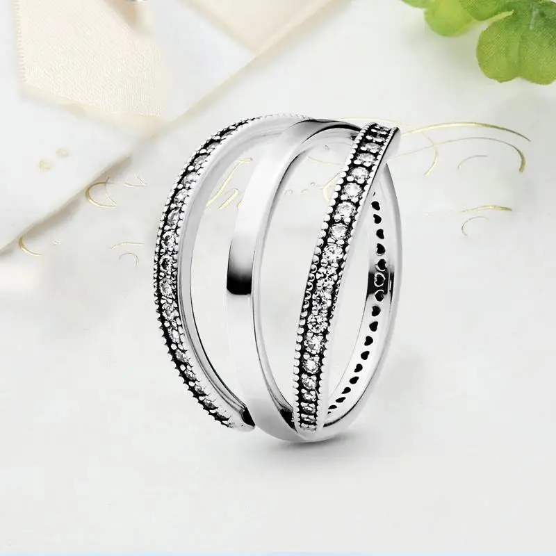 Женские кольца серебряного цвета сверкающие и полированные полосы с перекрестными вставками тройное кольцо для женщин свадебный подарок для помолвки