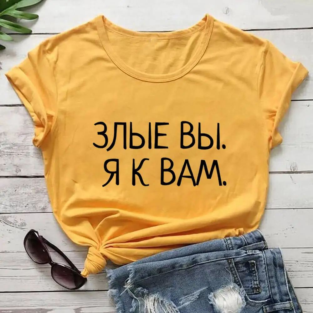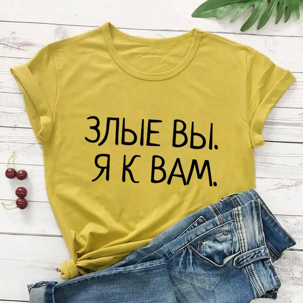 Злые вы. Я к вам. Женская футболка из 100% хлопка с русской кириллицей забавная летняя повседневная футболка унисекс с круглым вырезом футболка с короткими рукавами и надписью