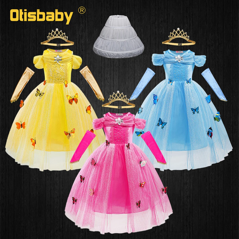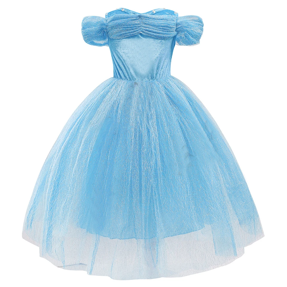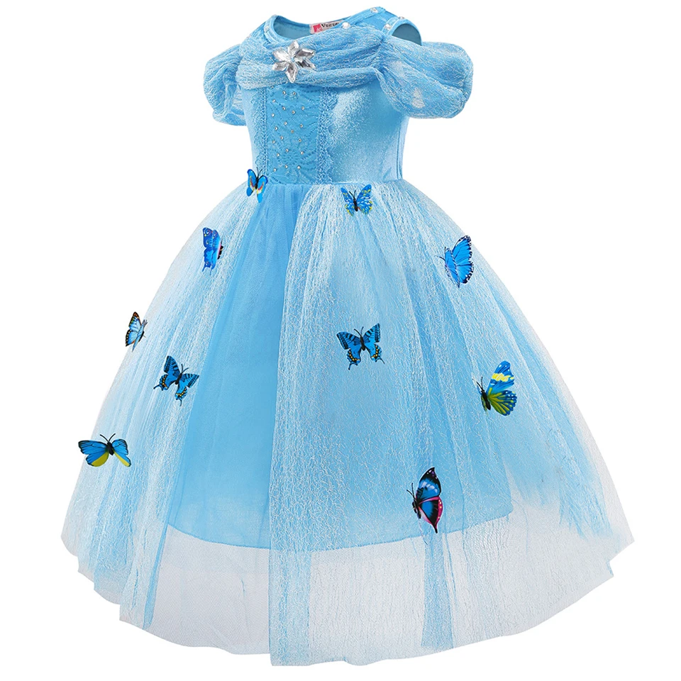 Одежда для маленьких девочек вечерние светильник платье Золушки синего цвета, Новое Детское платье покроя Принцесса Аврора принцессы Белль костюм; Цвет желтый, розовый; Пышное Платье с фатиновой юбкой для девочек