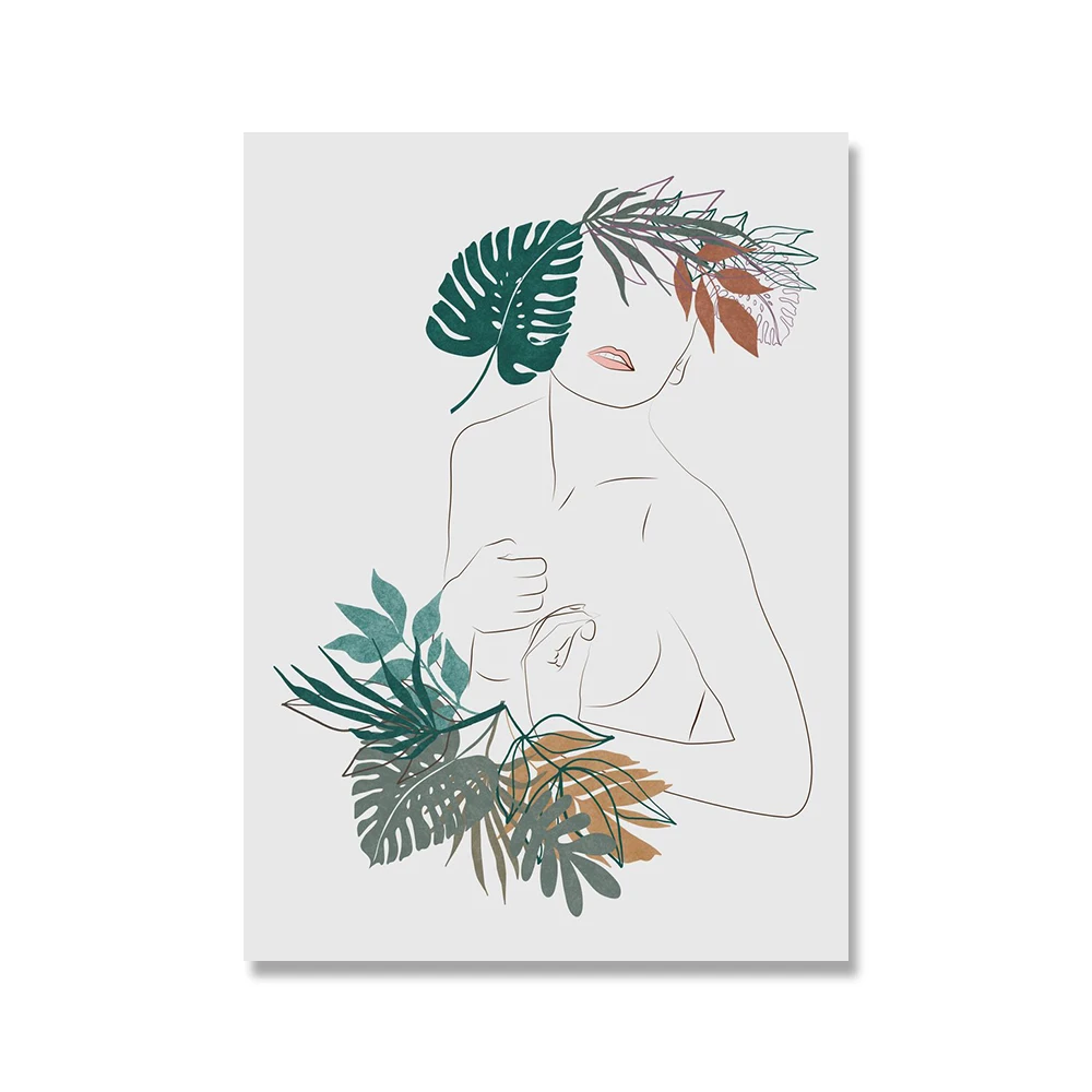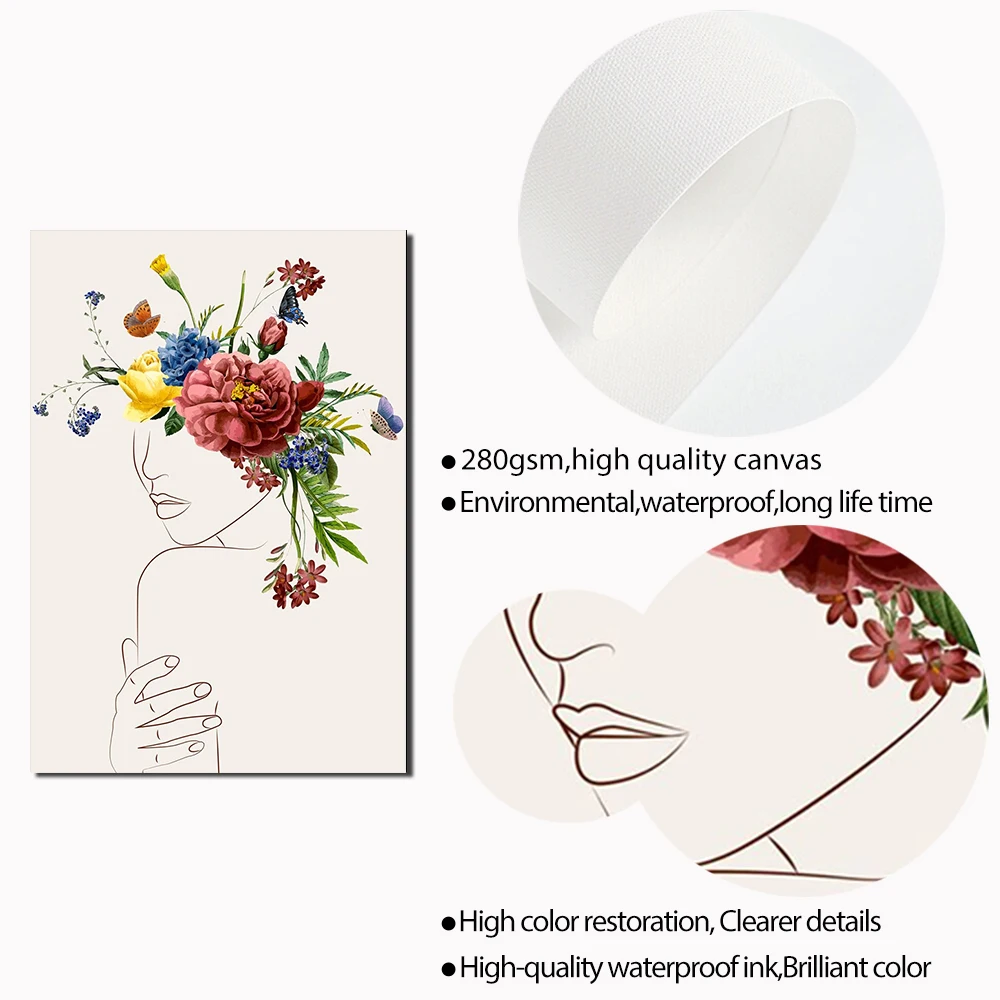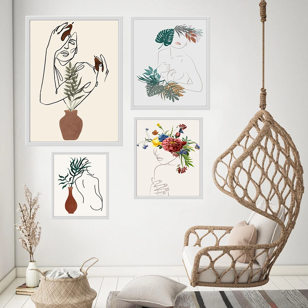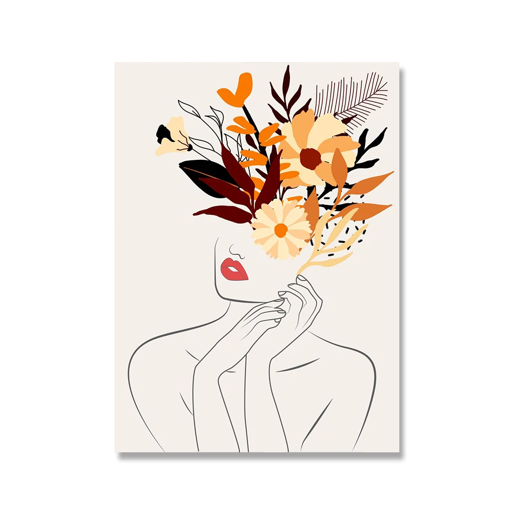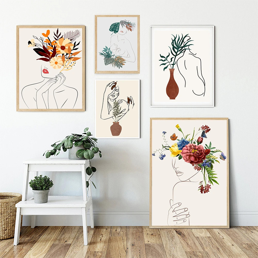Скандинавский женский постер для рисования линий и печати, абстрактная женщина, тело, цветок, голова, холст, живопись, настенное искусство, картина для спальни, домашний декор