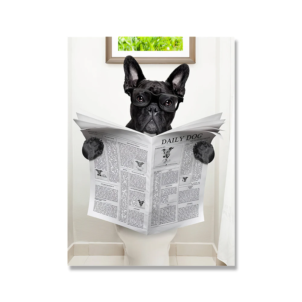 Современный плакат в скандинавском стиле для туалета, собаки, газеты, животных, забавная мультяшная картина для детской комнаты, ванной комнаты, искусство, домашний декор, Картина на холсте