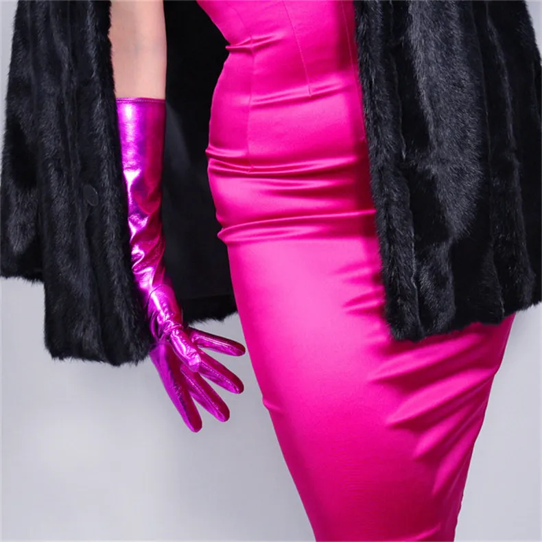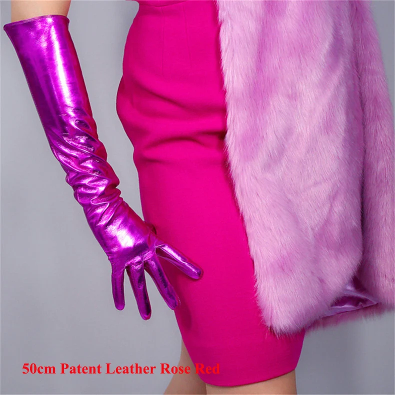 Латексные длинные перчатки, женские, из искусственной лакированной кожи, 35 дюймов, 90 см, яркие, блестящие, розово-красные, женские кожаные перчатки WPU319