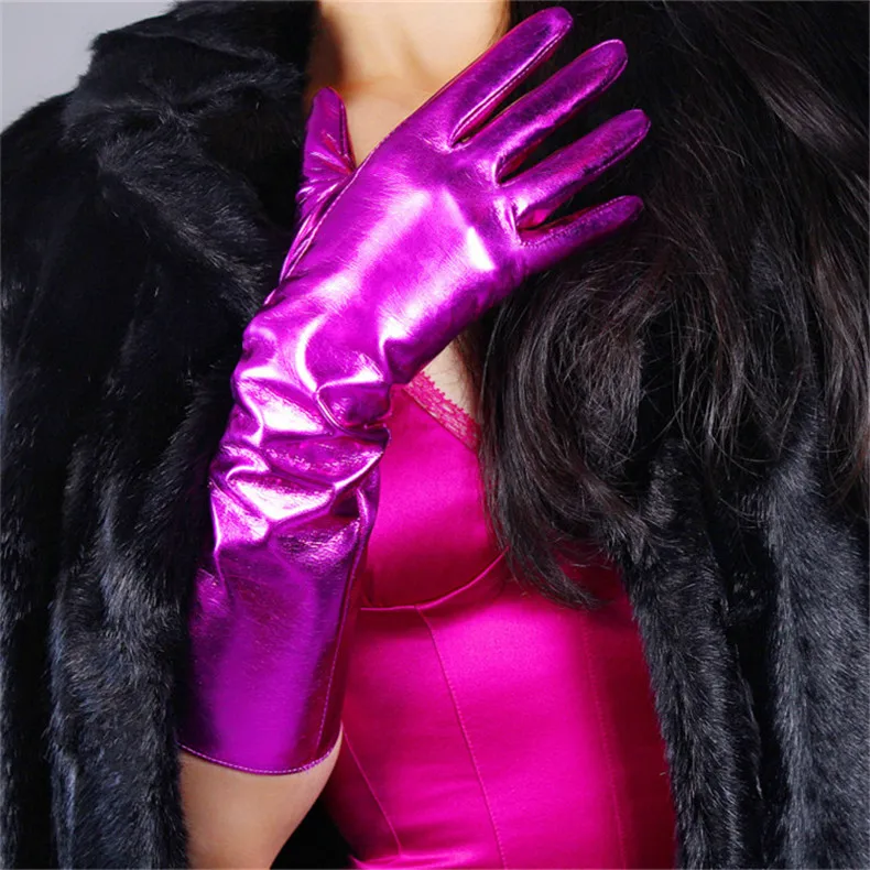 Латексные длинные перчатки женские из искусственной лакированной кожи 35 "90 см Яркие зеркальные Сияющие розово-красные женские кожаные перчатки WPU319