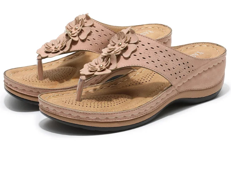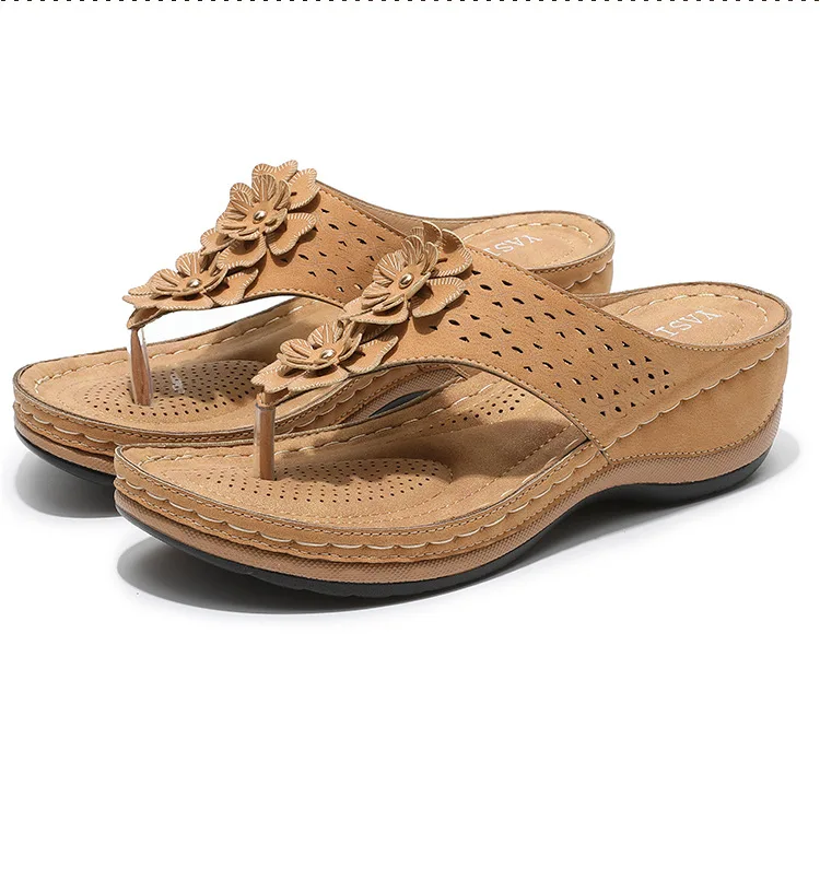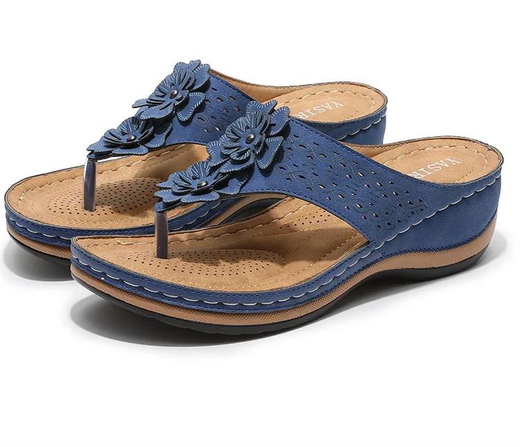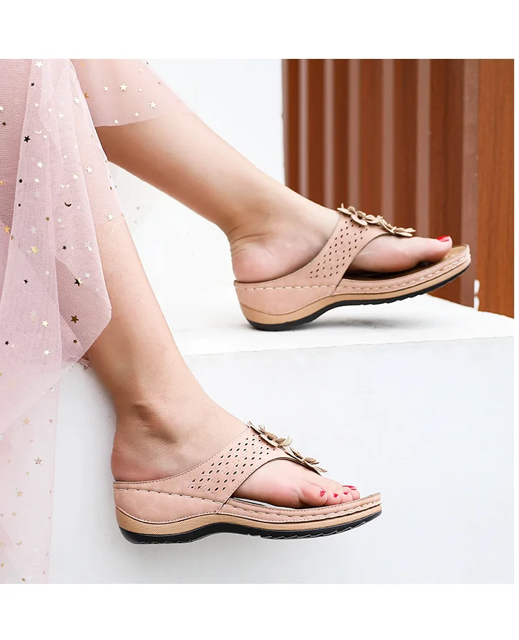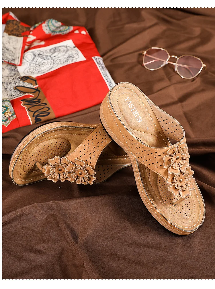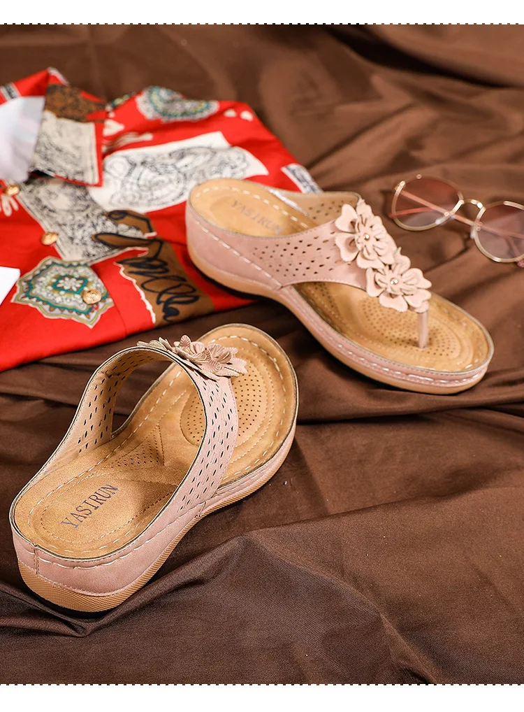 Шлепанцы женские в стиле ретро, повседневные сандалии с цветами, ди...
