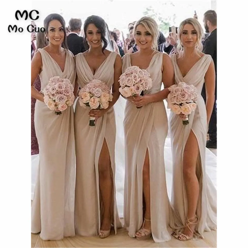 Cocomylody 2021 простое свадебвечерние платье, платья для подружек невесты, длинное Плиссированное шифоновое платье с V-образным вырезом и разрезом спереди для женщин