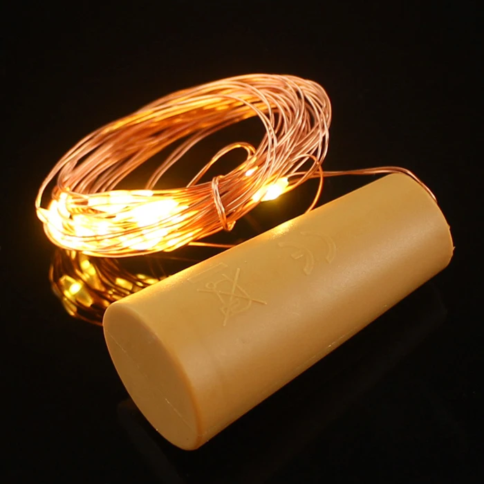 Гирлянда из медной проволоки с пробкой для бутылки, с аккумулятором в комплекте 10 шт., декоративная Рождественская лампа-лента для стеклянных бутылок, 2 м, 20 светодиодов