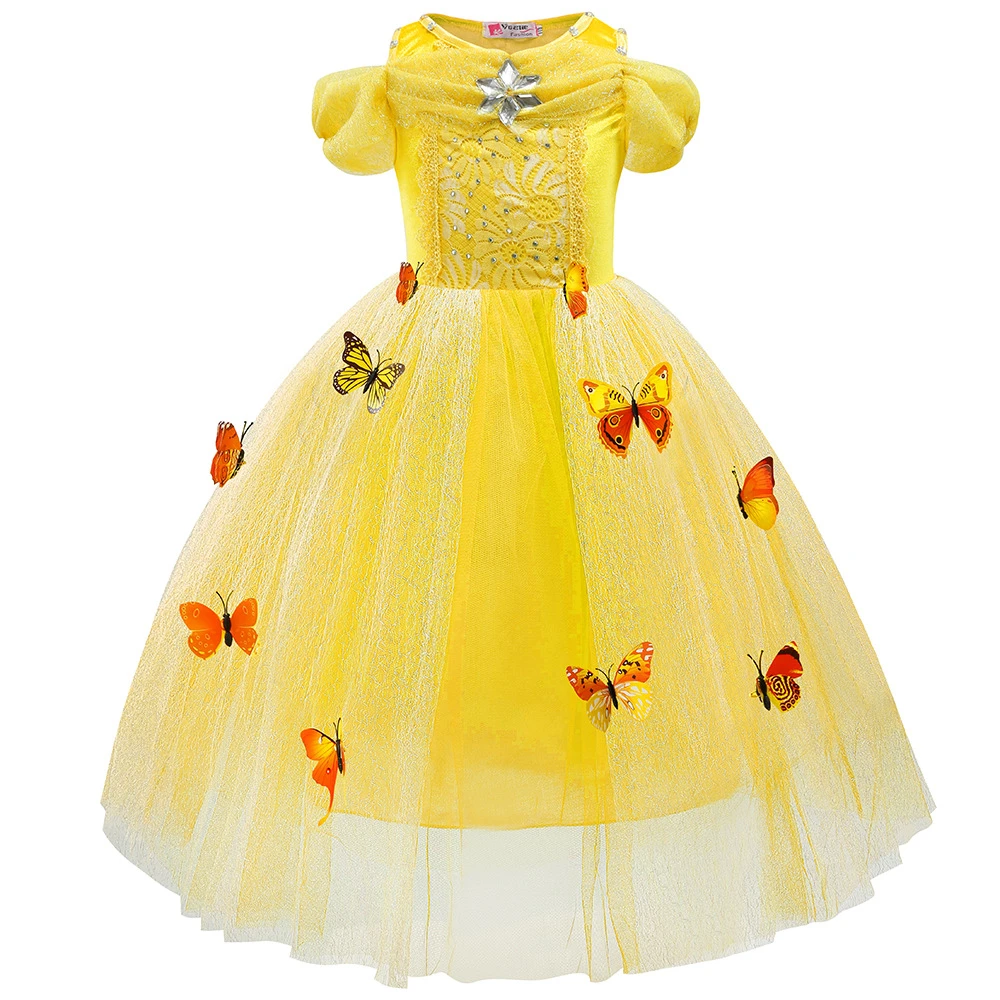 Платье принцессы Белль для девочек, детское бальное платье с цветоч...