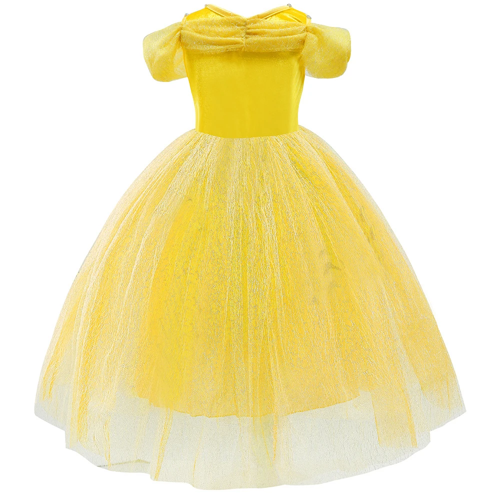 Платье принцессы Белль для девочек, желтое, с открытыми плечами, дл...