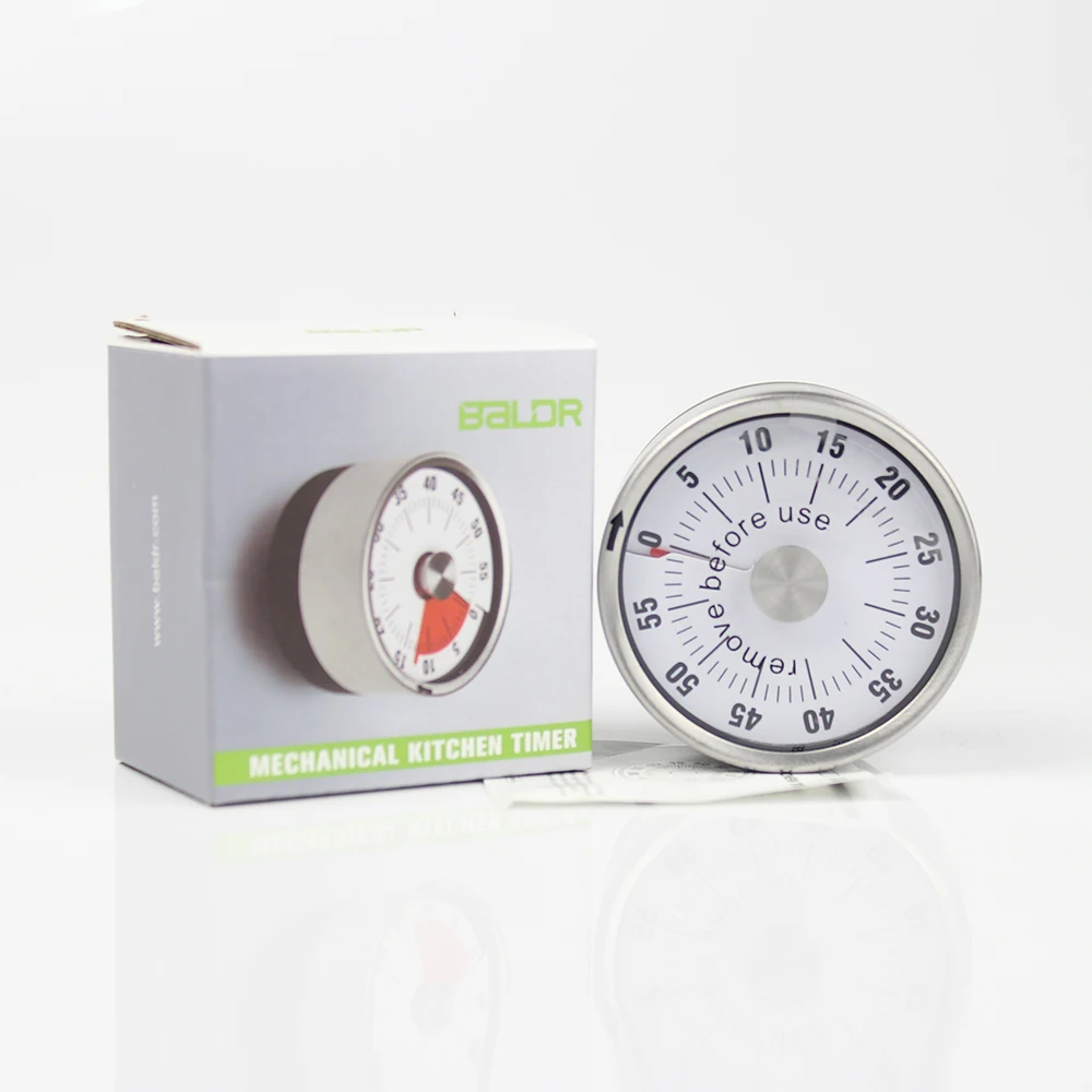 Механический кухонный таймер Baldr из нержавеющей стали, магнит круглой формы, 60 минут, новинка, обратный отсчет, часы для приготовления пищи, будильник, напоминание о времени