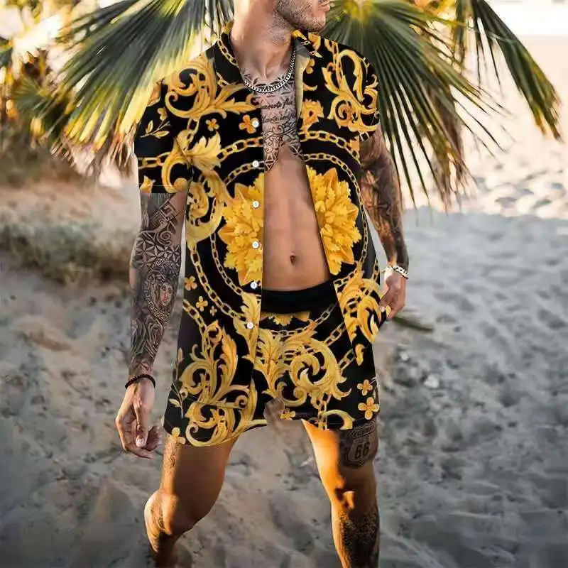 Гавайский Мужской комплект с принтом, Летняя Повседневная рубашка с коротким рукавом и цветочным принтом, пляжный костюм из двух предметов, 2021, новые модные мужские комплекты, S-3XL