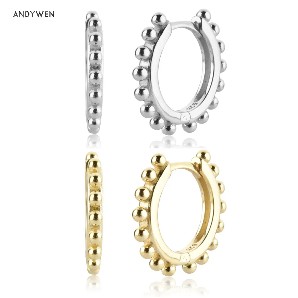 ANDYWEN 925 пробы серебряные золотые бусины Huggies кольца для пирсинга рок шайба круглые Роскошные ювелирные изделия зажимы петли ювелирные изделия вечерние Ринок